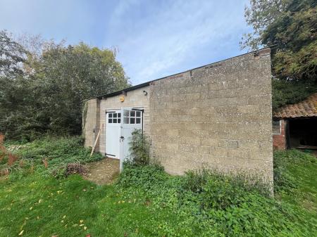 DETACHED WORKSHOP 26' 4" x 23' 7" (8.05m x 7.20m) Breese block construction with a concrete floor, pair of entrance doors, corrugated roof.