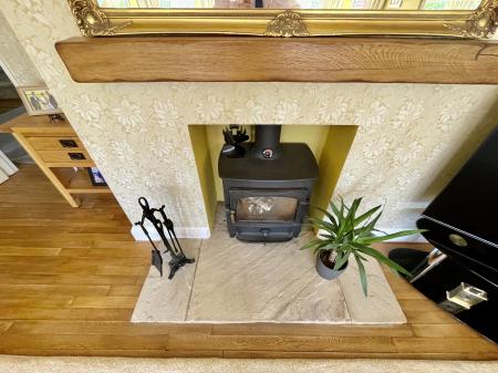 LOUNGE 16' 0" x 23' 7" (4.9m x 7.19m) 2 UPVC double glazed windows to the side elevation, 2 UPVC double glazed windows to the front elevation, full length UPVC double glazed window to the front elevation, skimmed ceiling, centre light point, 2 double radiators, TV point, feature fireplace with wooden surround with slabbed hearth and fitted multi fuel burner, oak, parquet flooring.
