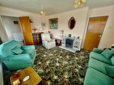 LOUNGE 11' 0" x 15' 10" (3.36m x 4.84m) Ceramic tiled fireplace with raised hearth and freestanding electric fire, dual aspect with UPVC windows to the front and side elevations each with vertical blinds as fitted, 2 pendant light fitments, radiator.