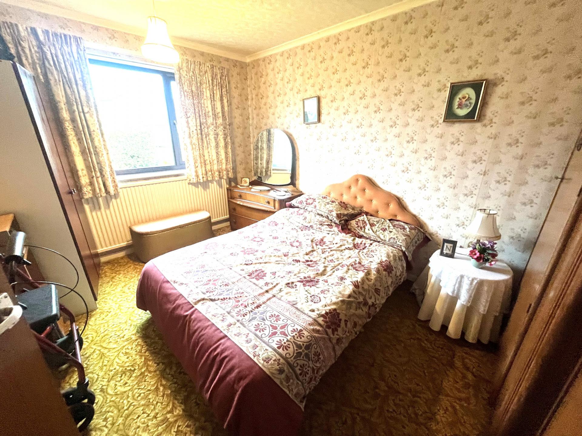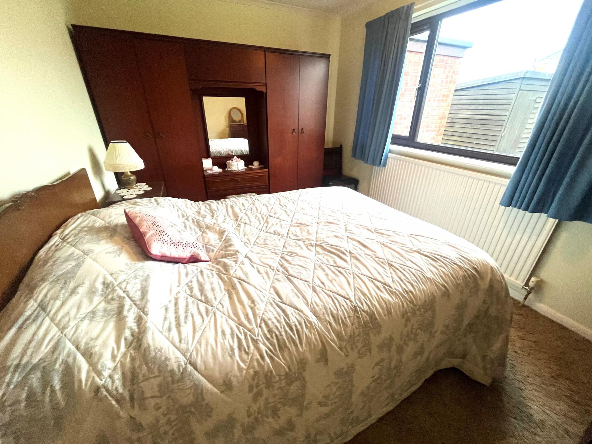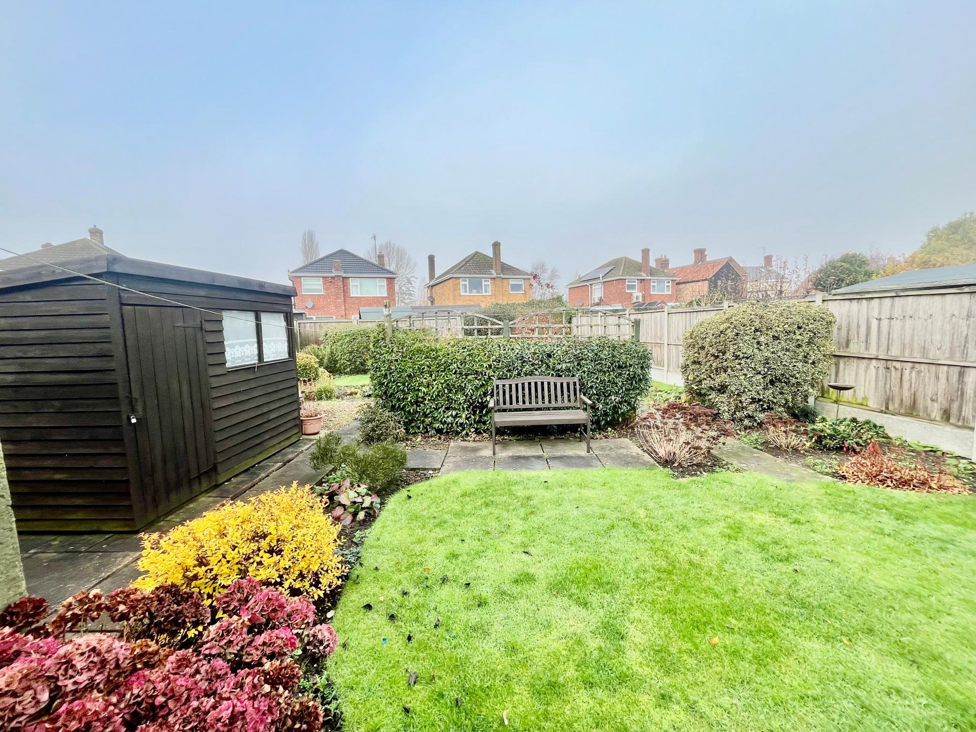 To the right hand side of the bungalow there is a garden shed, paved patio, integral store and modern (2024) Grant oil fired central heating boiler. The side access continues round to: