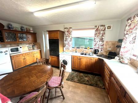 KITCHEN DINER 15' 11" x 9' 6" (4.86m x 2.90m) Roll edged worktops with inset one and a quarter bowl single drainer stainless steel sink unit, cupboards and drawers beneath, intermediate wall tiling, eye level wall cupboards, glazed display cabinets, built-in electric double oven, ceramic hob, fluorescent strip light, dual aspect with UPVC windows to the front and side elevations, double radiator, half obscure glazed UPVC external entrance door, plumbing and space for washing machine.