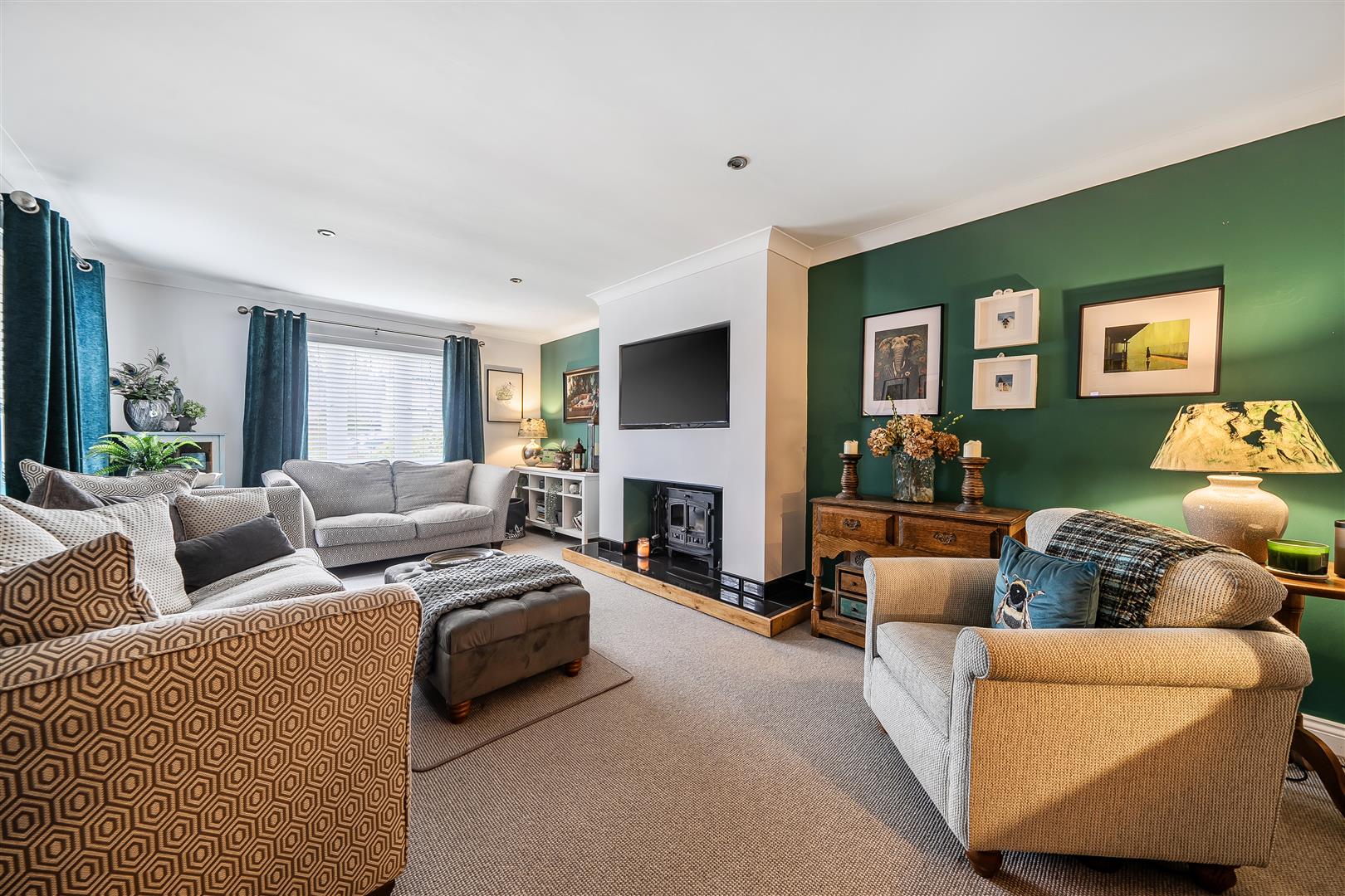 - Spacious living room with feature log burner