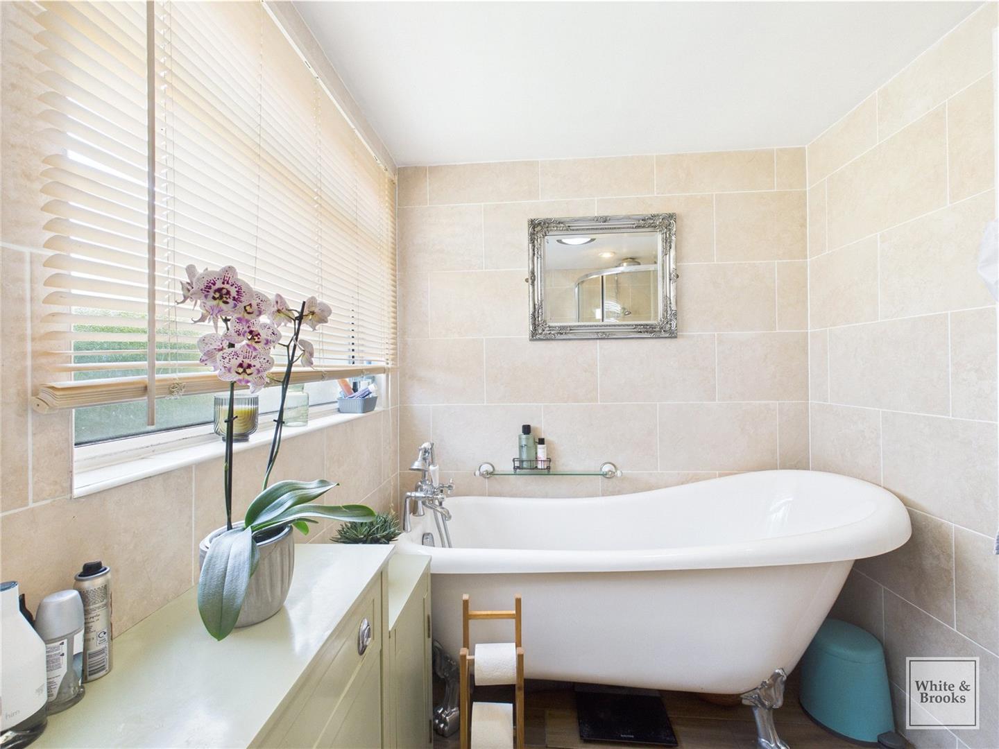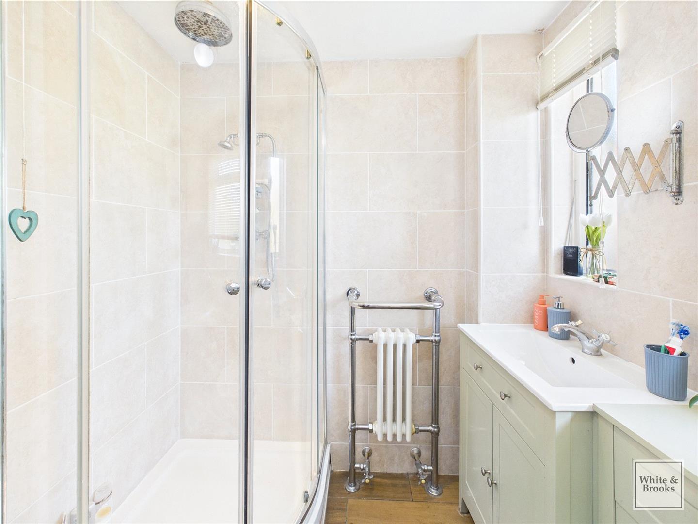 The lovely 4 piece bathroom suite is at the rear with stylish roll top bath, separate glass enclosed shower, WC and wash hand basin, built in vanity unit and antique style heated towel rail,