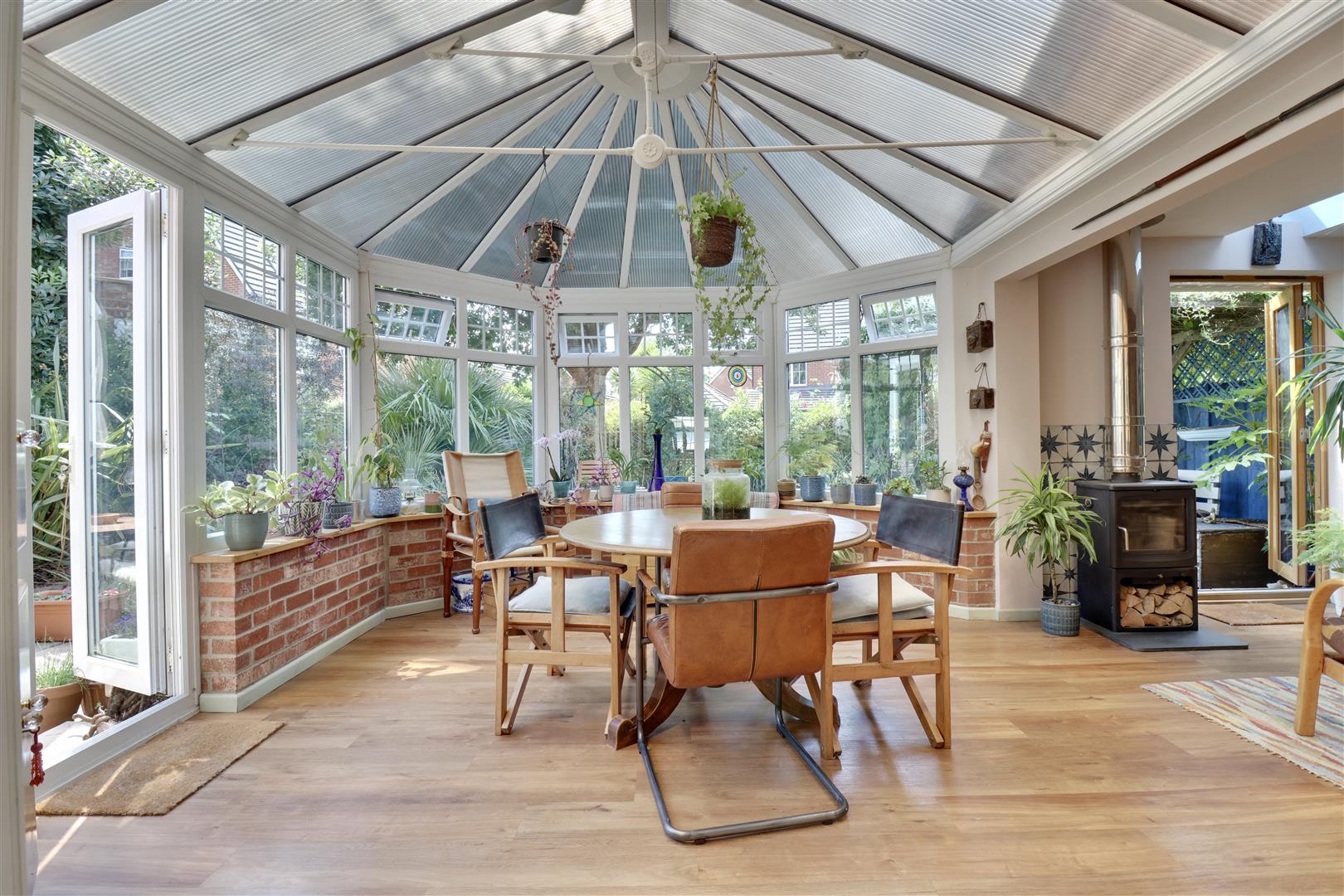 The home boasts three well-appointed reception rooms, providing ample space for relaxation and entertainment. The extended conservatory, or sun room, invites natural light and offers a tranquil space to unwind, making it a delightful addition to the living area.