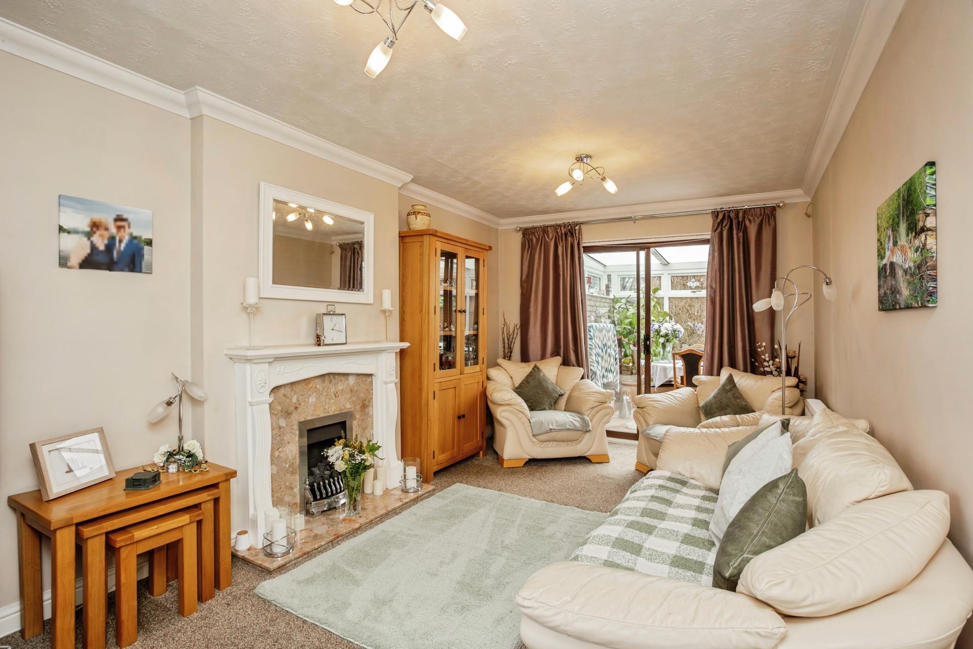 With living flame gas fire on hearth with decorative timber surround, uPVC double glazed window to front elevation and sliding patio doors leading to the Conservatory, .