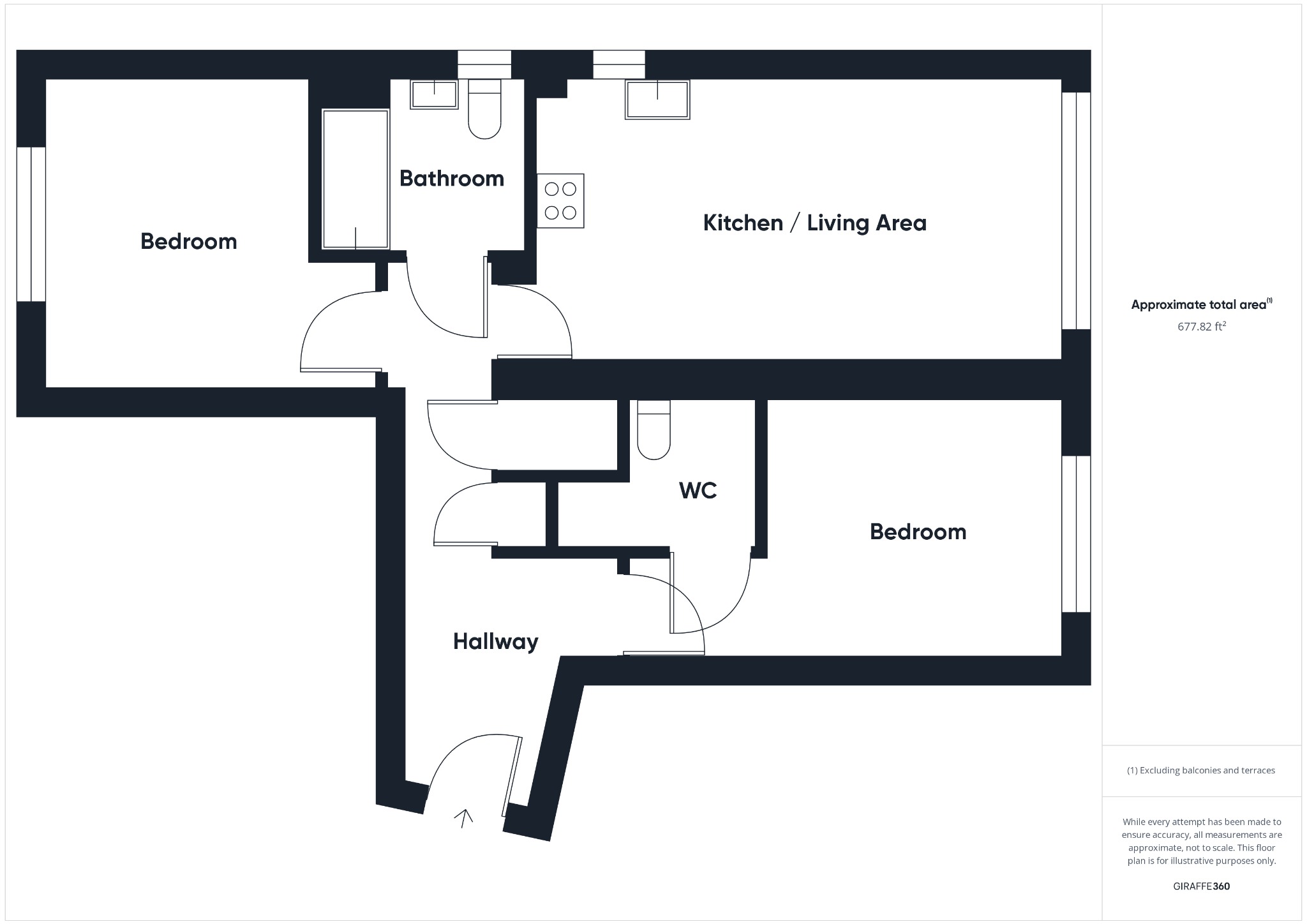 The modern fitted bathroom and two bedrooms make up the rest of the apartment with the main bedroom boasting a WC.