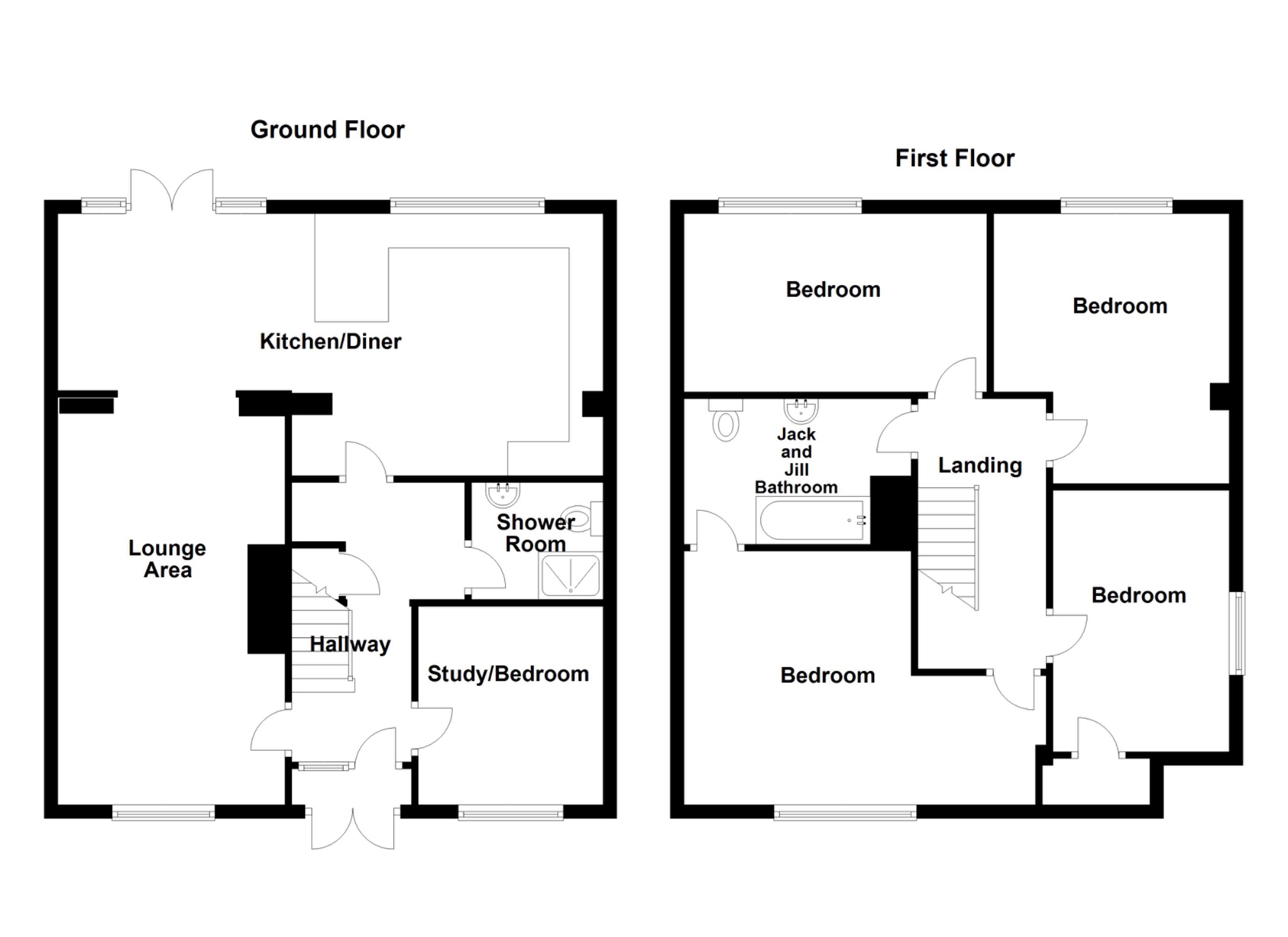Moving to the first floor, you will find four generously sized double bedrooms, each offering plenty of space and natural light. The modern family bathroom is a standout feature, with direct access from the main bedroom, functioning as a Jack and Jill bathroom for added convenience.