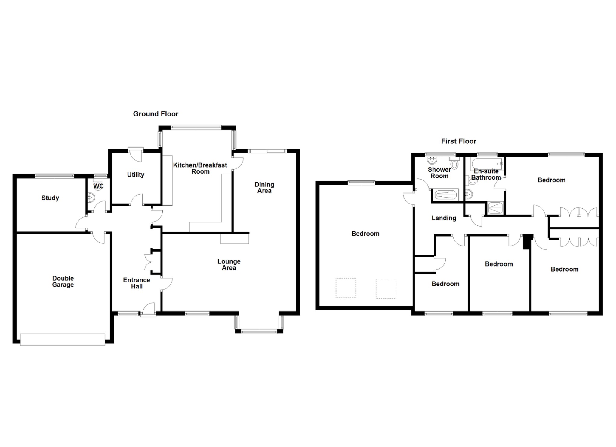 Upstairs, five well-proportioned bedrooms provide excellent accommodation for a growing family. The principal bedroom benefits from its own en-suite, while the remaining bedrooms are served by a spacious family shower room.