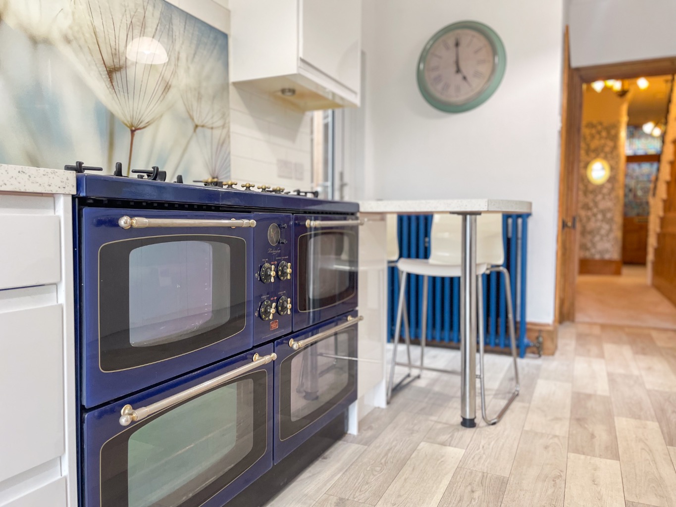 Renovated and maintained to an exceptional standard throughout, the interior opens with a spacious and welcoming hallway leading to a stylish lounge, formal dining room, and a well-appointed kitchen with access to a charming rear porch. There is a third reception room, currently arranged as a dining area, which flows seamlessly into a bright and airy conservatory. A ground floor cloakroom adds further practicality.