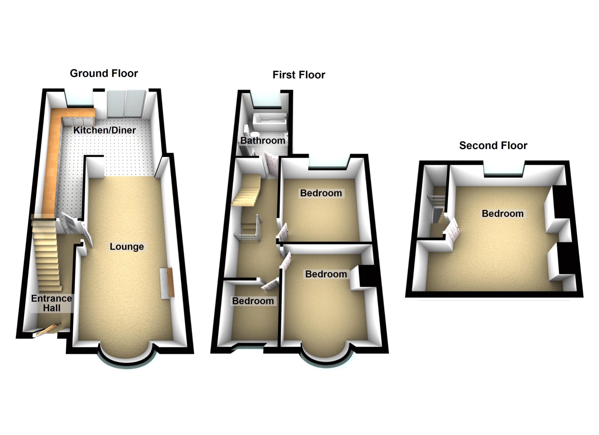 The first floor offers two double bedrooms, a good sized single and an extended family bathroom.