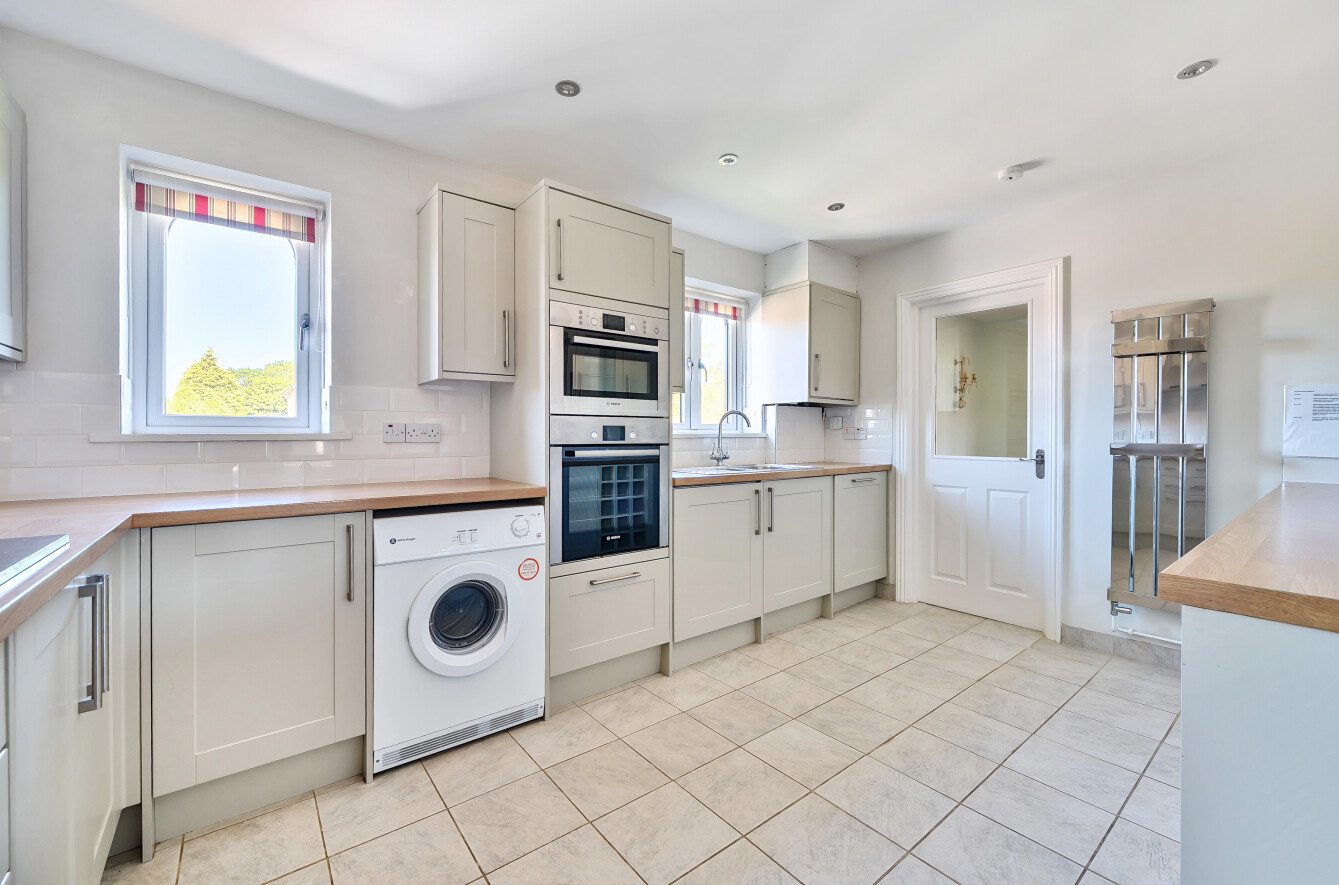 Off the hallway is an impressive modern fitted kitchen with high quality Bosch appliances including double oven/microwave, fridge, freezer, extractor fan, dishwasher, and integrated washing machine. There is also a Smeg induction hob, a freestanding tumble dryer, and a radiator towel rail