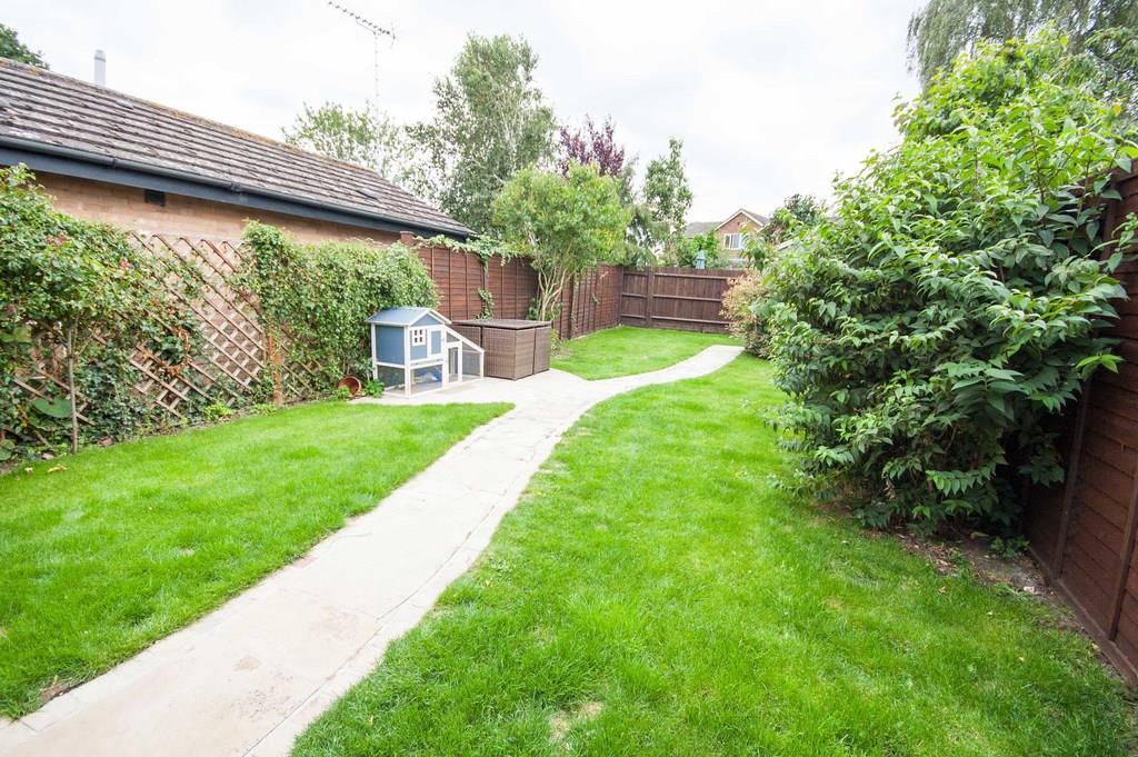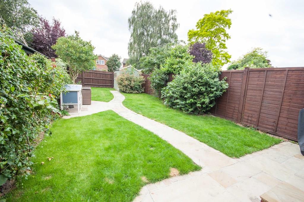 Block paved patio area, mainly laid to lawn, gated side access, shed to rear, 51' approx.