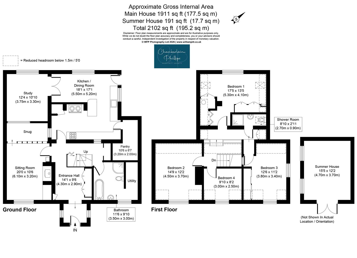 Upstairs, the first floor offers four well-proportioned bedrooms, arranged around a central landing, each benefitting from attractive outlooks and excellent natural light. A well-appointed shower room completes the first floor.