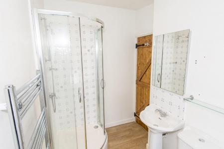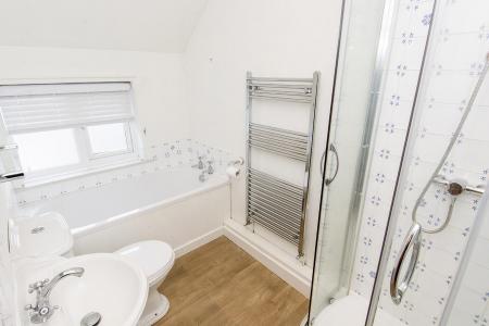 Bathroom - 2.77m x 1.52m plus door recess (9'1" x 5'0" plus d - UPVC double-glazed window to rear. White four piece suite comprising wc, wash hand basin, panelled bath and shower cubicle. Heated towel rail. Tiled splash backs.
