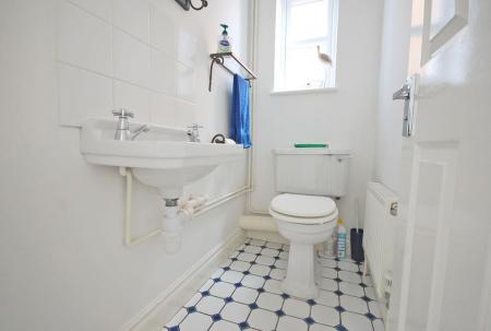 Opaque double glazed window to front aspect, low level WC, inset wash hand basin, radiator, tiled flooring and smooth coved ceiling.