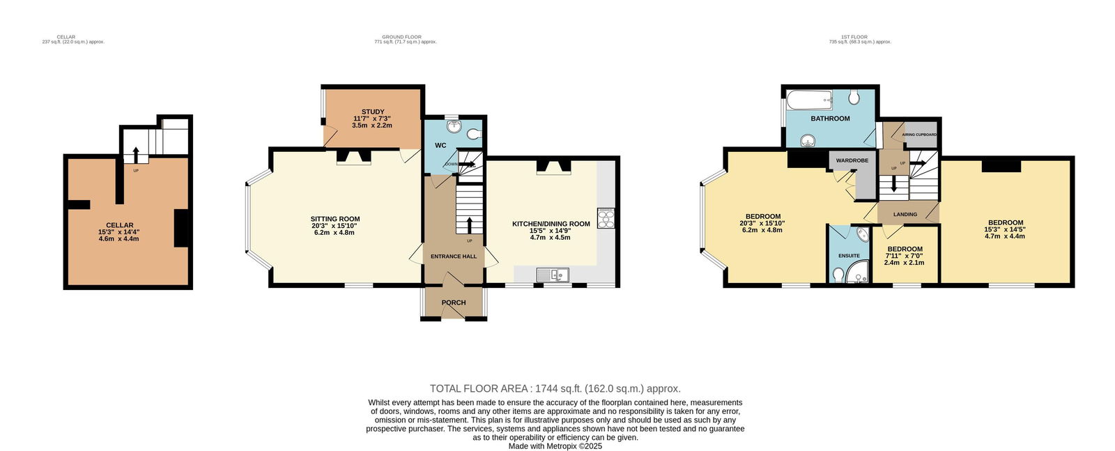 Cellar 3.95m (12ft 9in) x 4.73m (15ft 3in) max