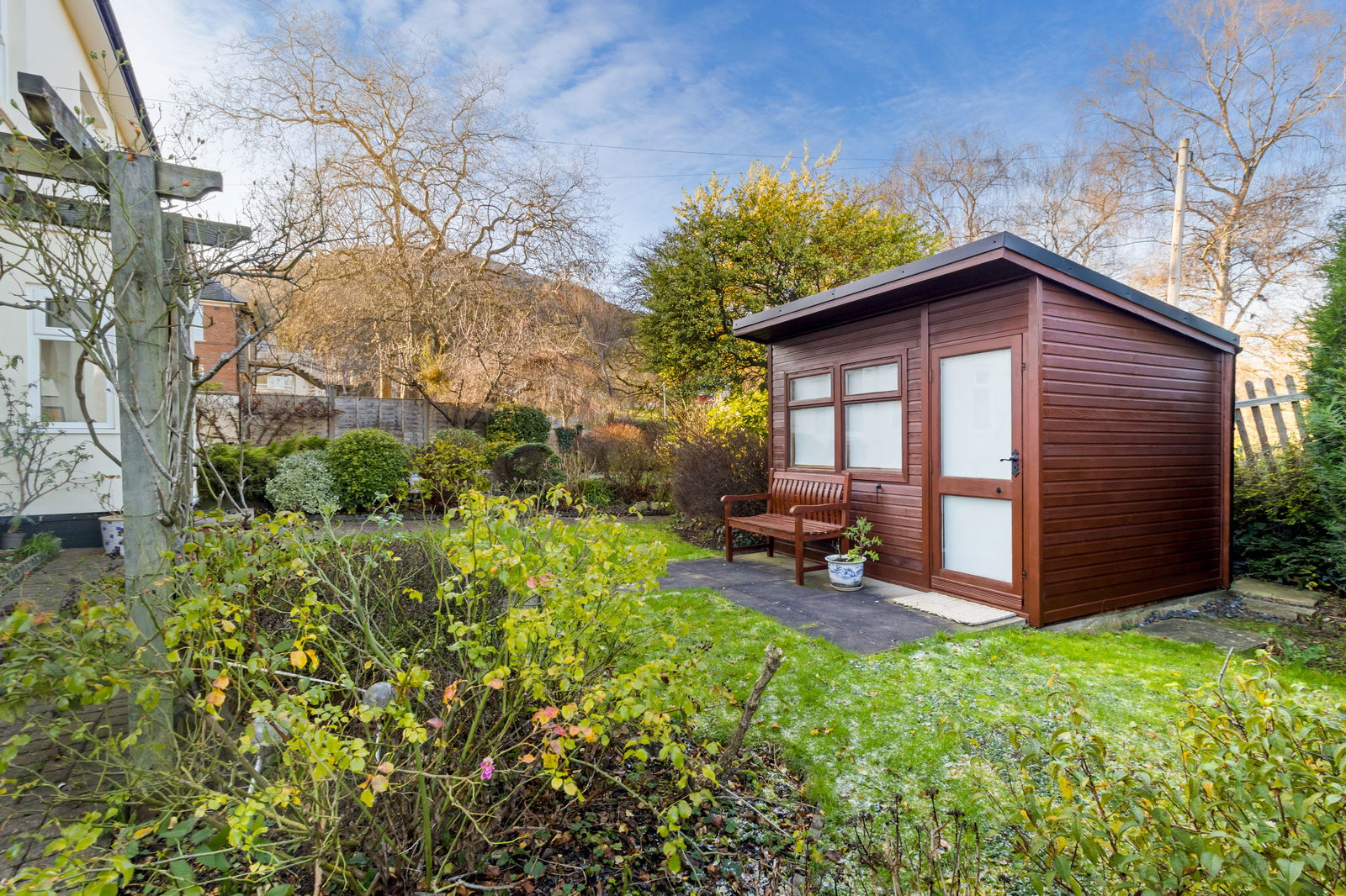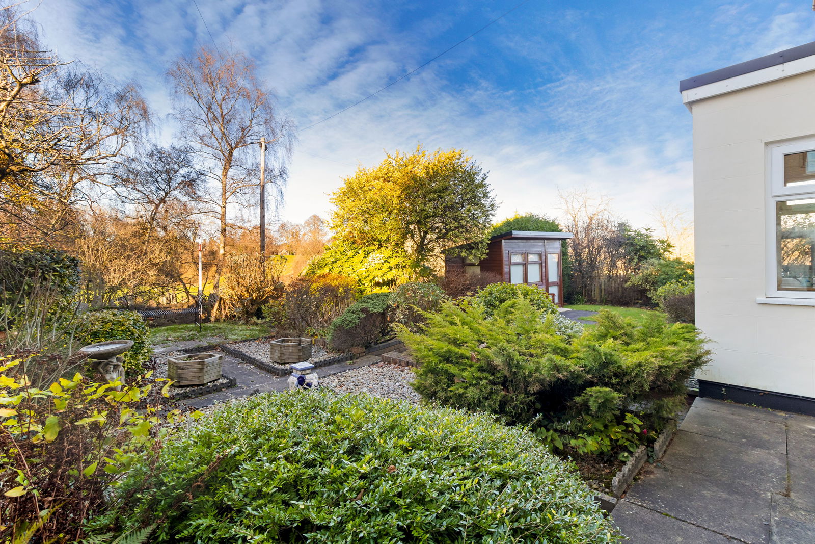 There is garden to both front and side accessed via a pedestrian gate from the road and from the driveway. The side garden is designed for low maintenance yet has a mature feel with a range of slate and shrub borders. Summerhouse to enjoy the delightful garden mainly laid to patio with south and east facing aspects. The front garden is mainly laid to lawn with paved paths laid in the style of a cross with gravel quadrants for shrubs and flowers. A path leads through the lawn to a