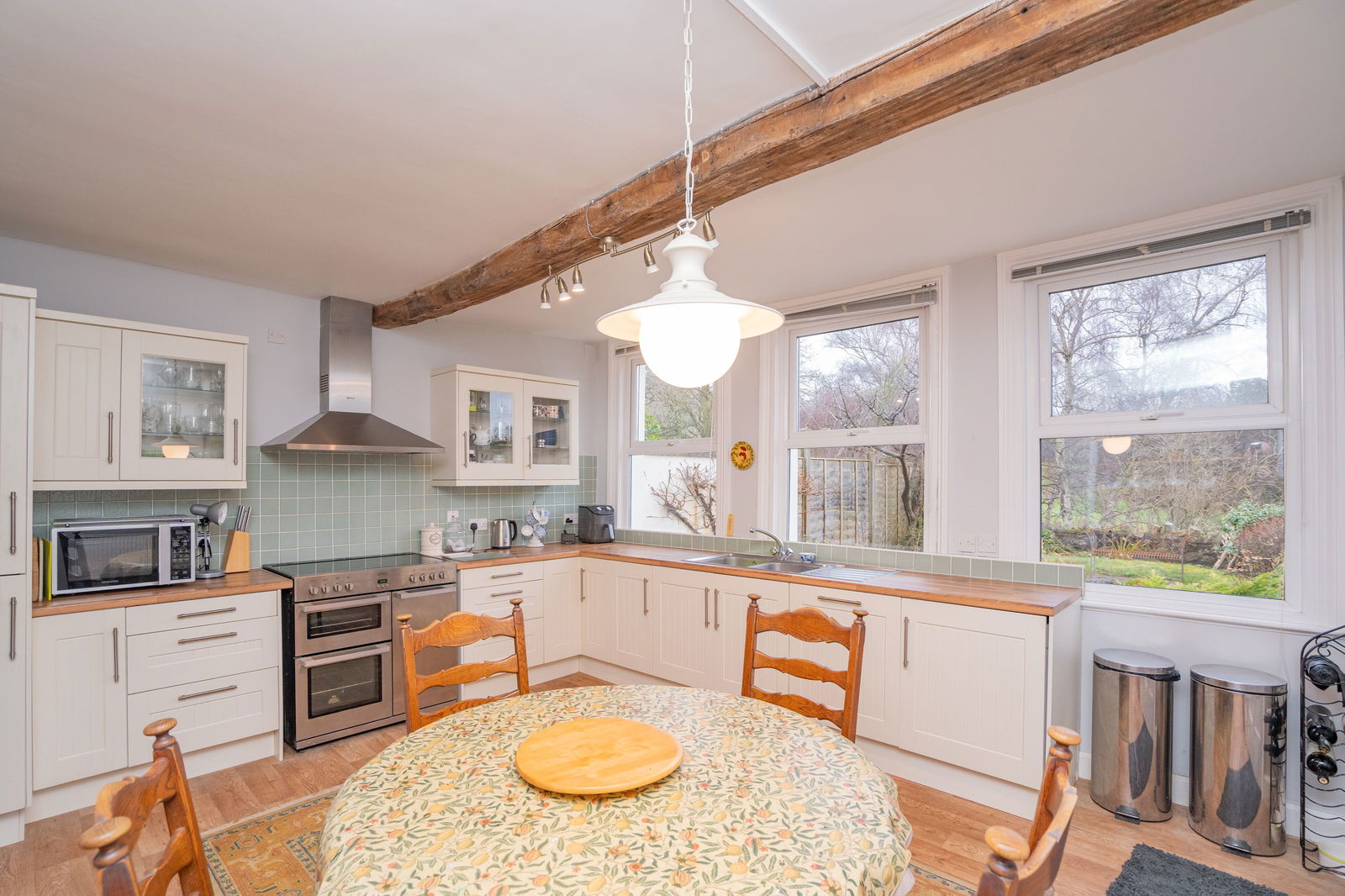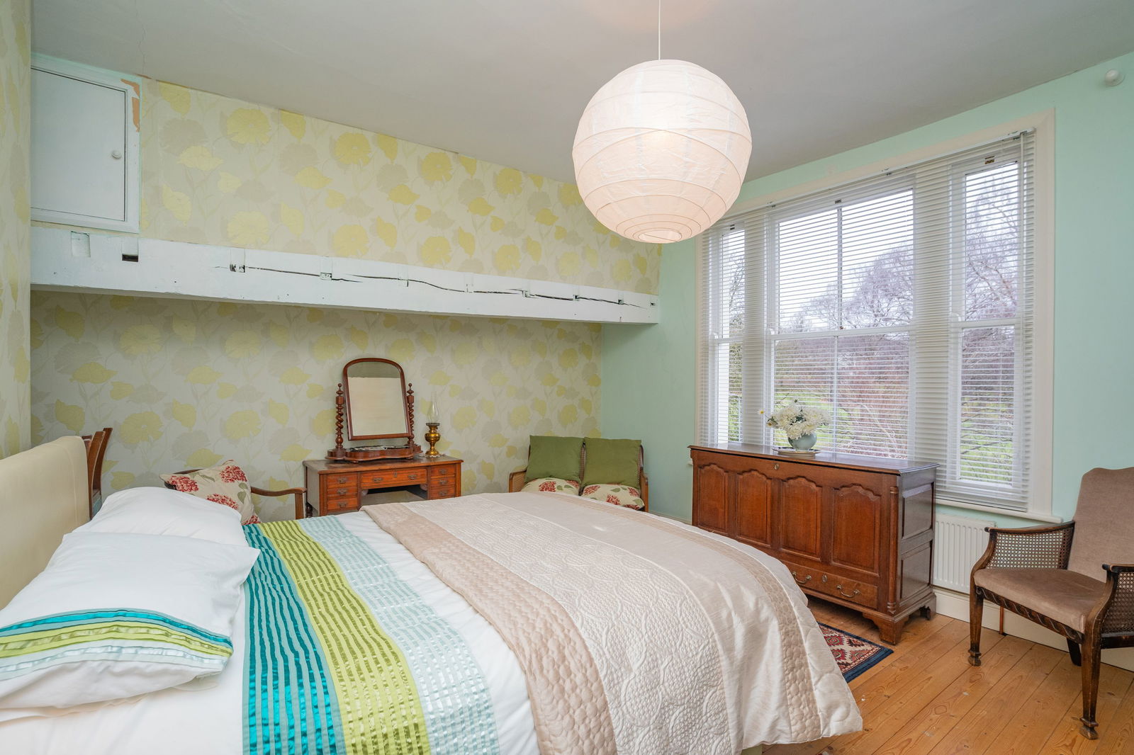 Glazed window to front, pendant light fitting and radiator.