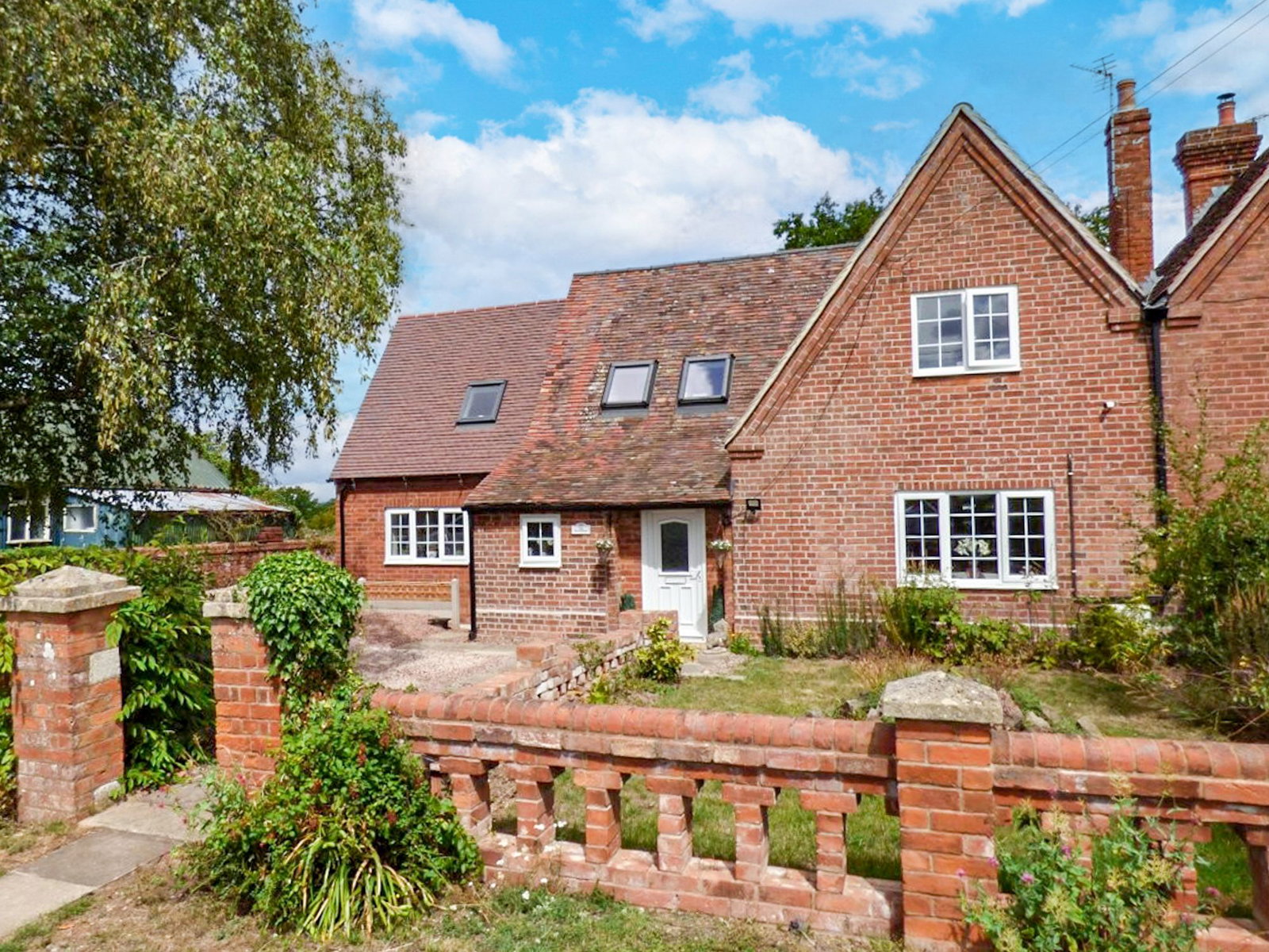 The house is set back from the road behind a Malvern Stone wall with pedestrian gate and off road parking to the left. A gates gives access to the front and side gardens and a pedestrian path leads to the