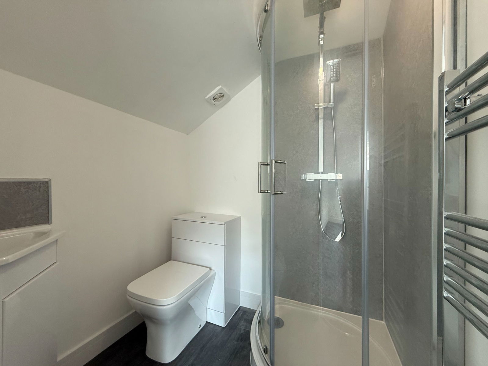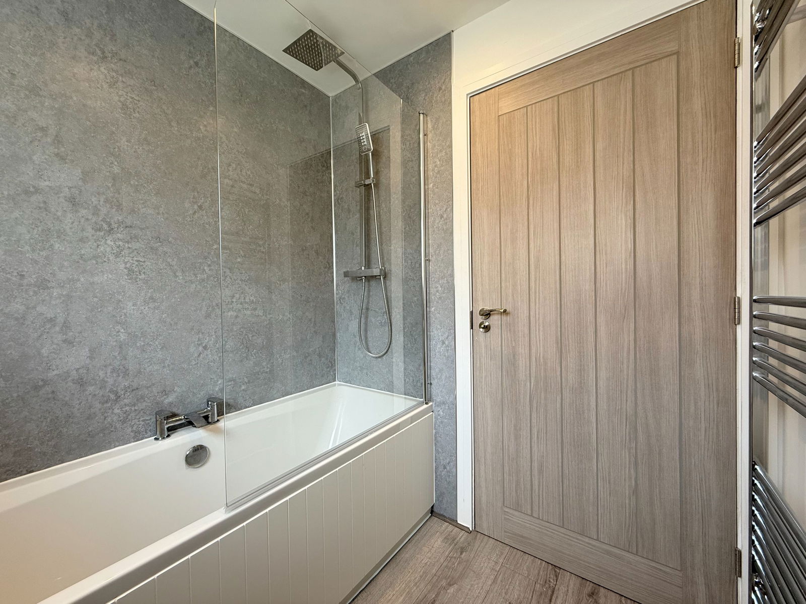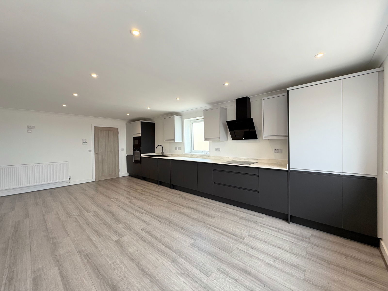 Apartment 4 is a ground floor one bedroom apartment finished to a high standard in this new build complex of four apartments. The private front door is positioned to the left hand side of the front of the building under a Veranda Porch and opens to the open plan Living Space enjoying double glazed french doors opening to the front aspect. There is a range to one wall of fitted kitchen units incorporating drawer and cupboard base units with worktop over, matching splashbacks and incorporating integrated appliances including HOB, extractor, OVEN, MICROWAVE, FRIDGE FEEZER and WASHING MACHINE. Wood effect laminate flooring flows throughout this space and through a doorway into the Inner Hallway giving access to the airing cupboard housing the hot water cylinder. The Double Bedroom offers a double glazed window and french double glazed doors to rear. Built-in wardrobe. This space is serviced and complimented by the Shower Room fitted with a modern white suite.