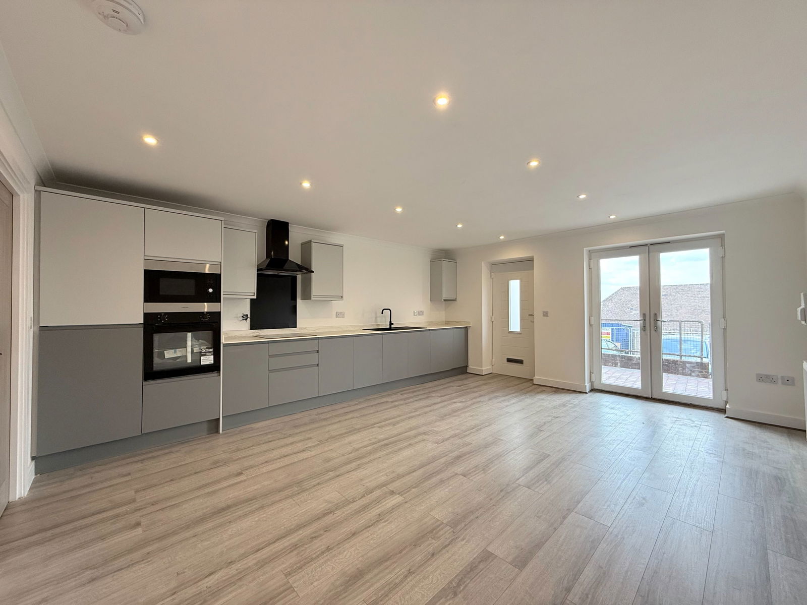 Apartment 4 is a ground floor one bedroom apartment finished to a high standard in this new build complex of four apartments. The private front door is positioned to the left hand side of the front of the building under a Veranda Porch and opens to the open plan Living Space enjoying double glazed french doors opening to the front aspect. There is a range to one wall of fitted kitchen units incorporating drawer and cupboard base units with worktop over, matching splashbacks and incorporating integrated appliances including HOB, extractor, OVEN, MICROWAVE, FRIDGE FEEZER and WASHING MACHINE. Wood effect laminate flooring flows throughout this space and through a doorway into the Inner Hallway giving access to the airing cupboard housing the hot water cylinder. The Double Bedroom offers a double glazed window and french double glazed doors to rear. Built-in wardrobe. This space is serviced and complimented by the Shower Room fitted with a modern white suite.