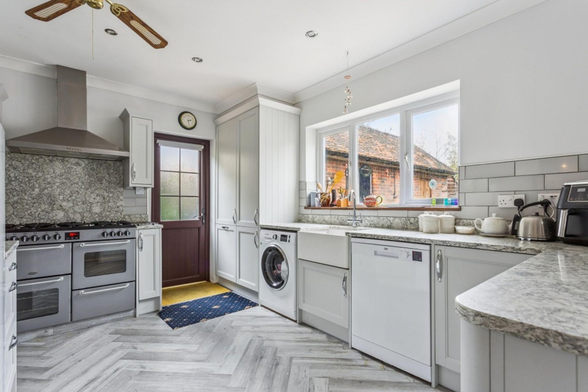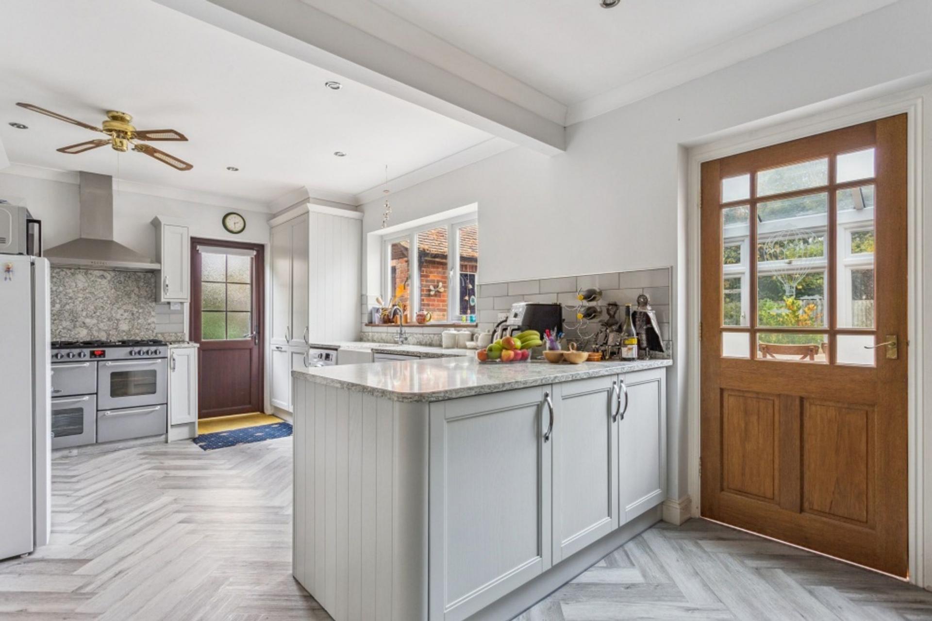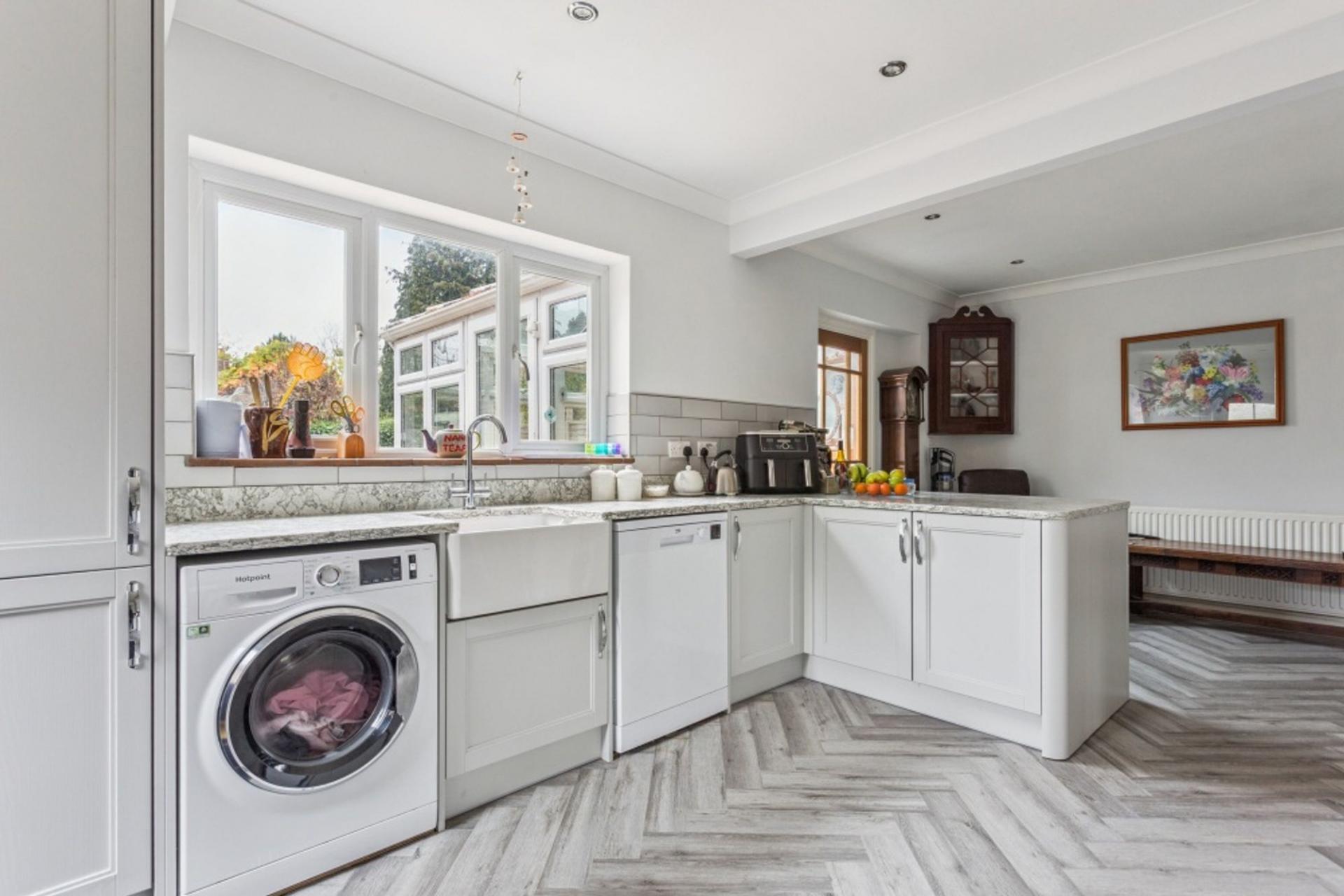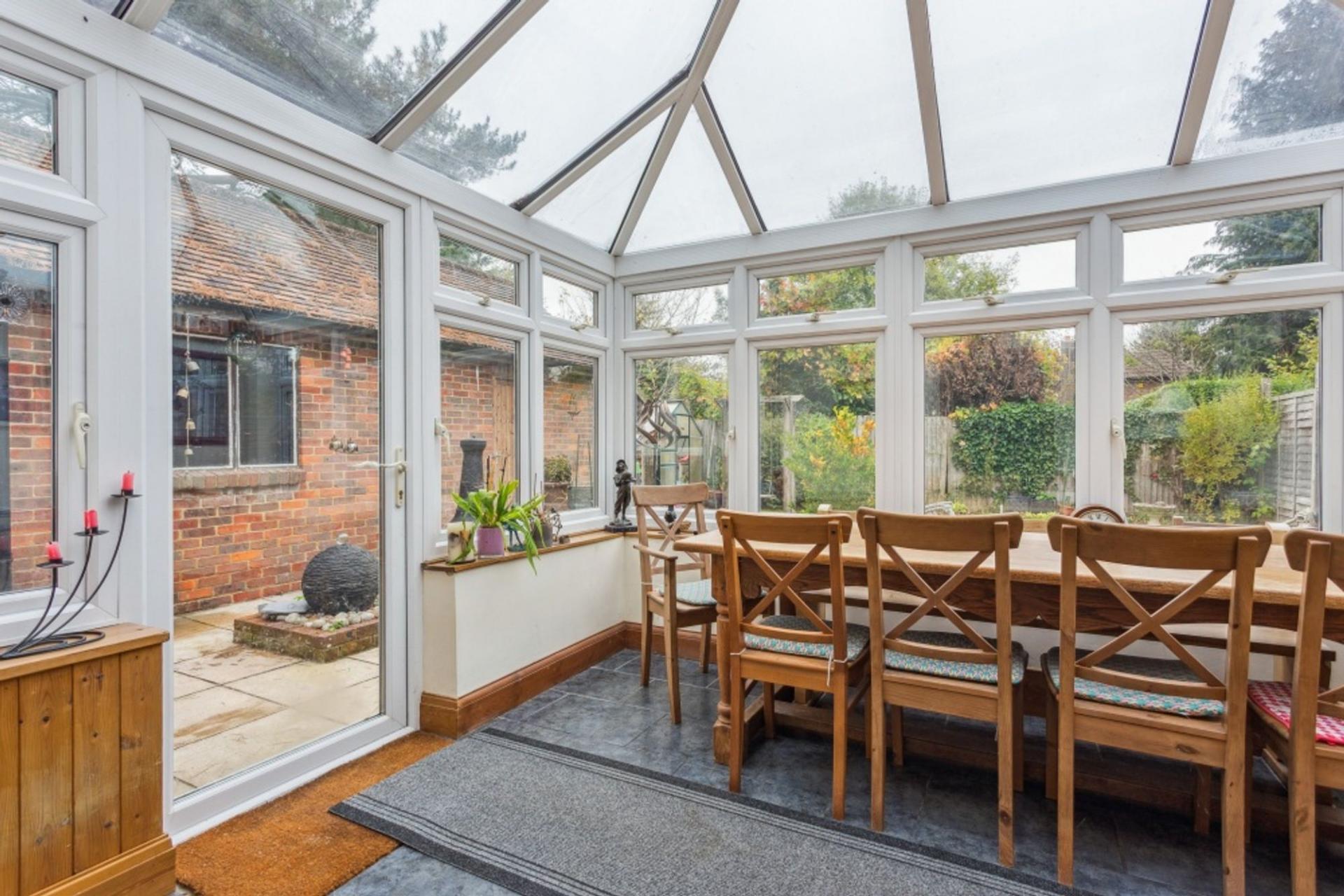 Recently refitted, the modern kitchen/diner runs across the rear of the house and is divided by a breakfast bar return. The adjacent dining area has space for a dining table with a door into a sealed unit, double glazed, conservatory with a glass roof and doors out to the pretty gardens.