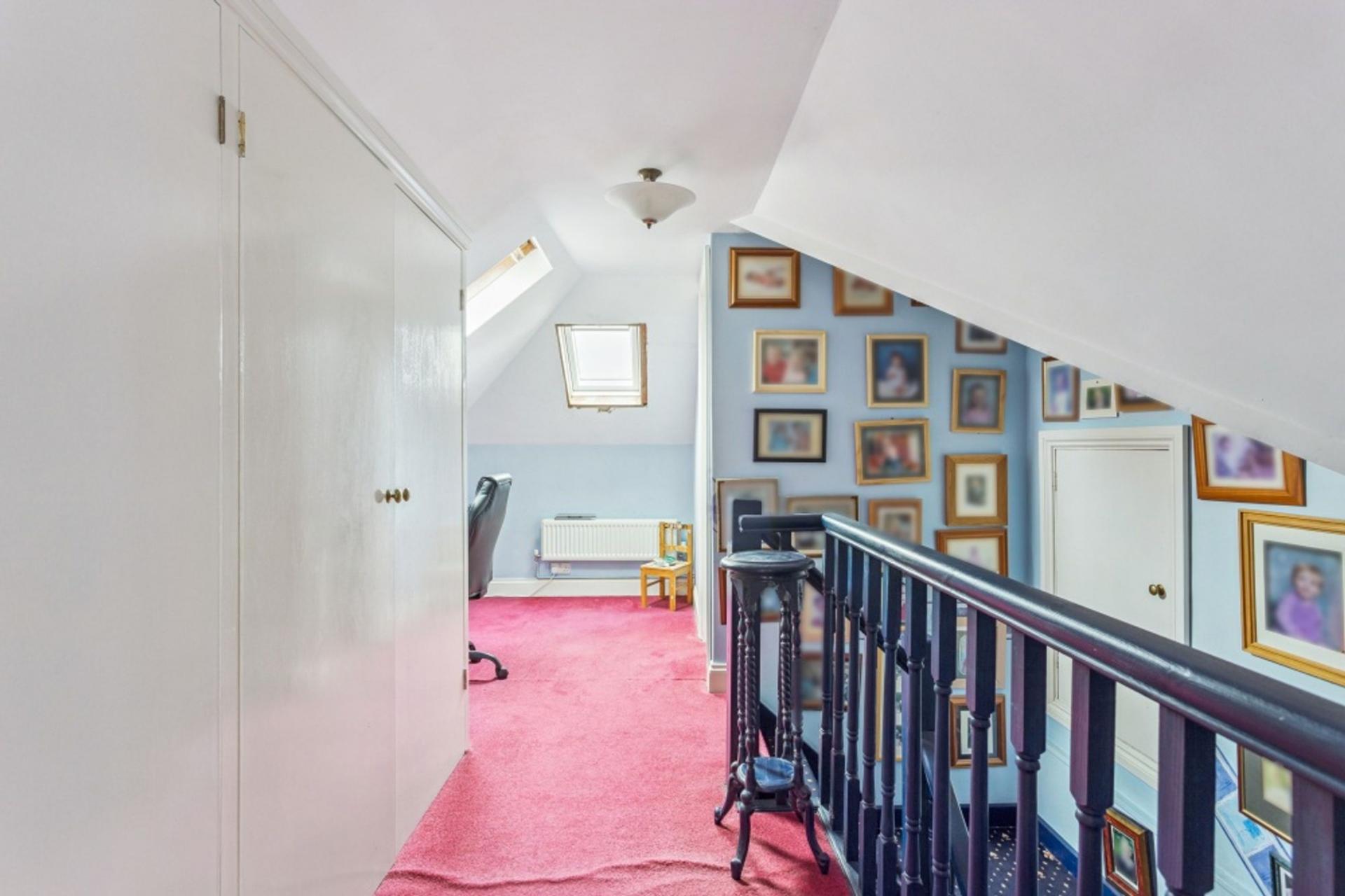 A staircase from the hallway leads to the master bedroom and separate W.C. The vendors currently use this space as an office making great use of the space. There is generous eaves storage and scope (STPP) to extend to the front with a dormer to add an extra bedroom with views across adjacent playing fields. To the rear is a further bedroom overlooking the garden.
