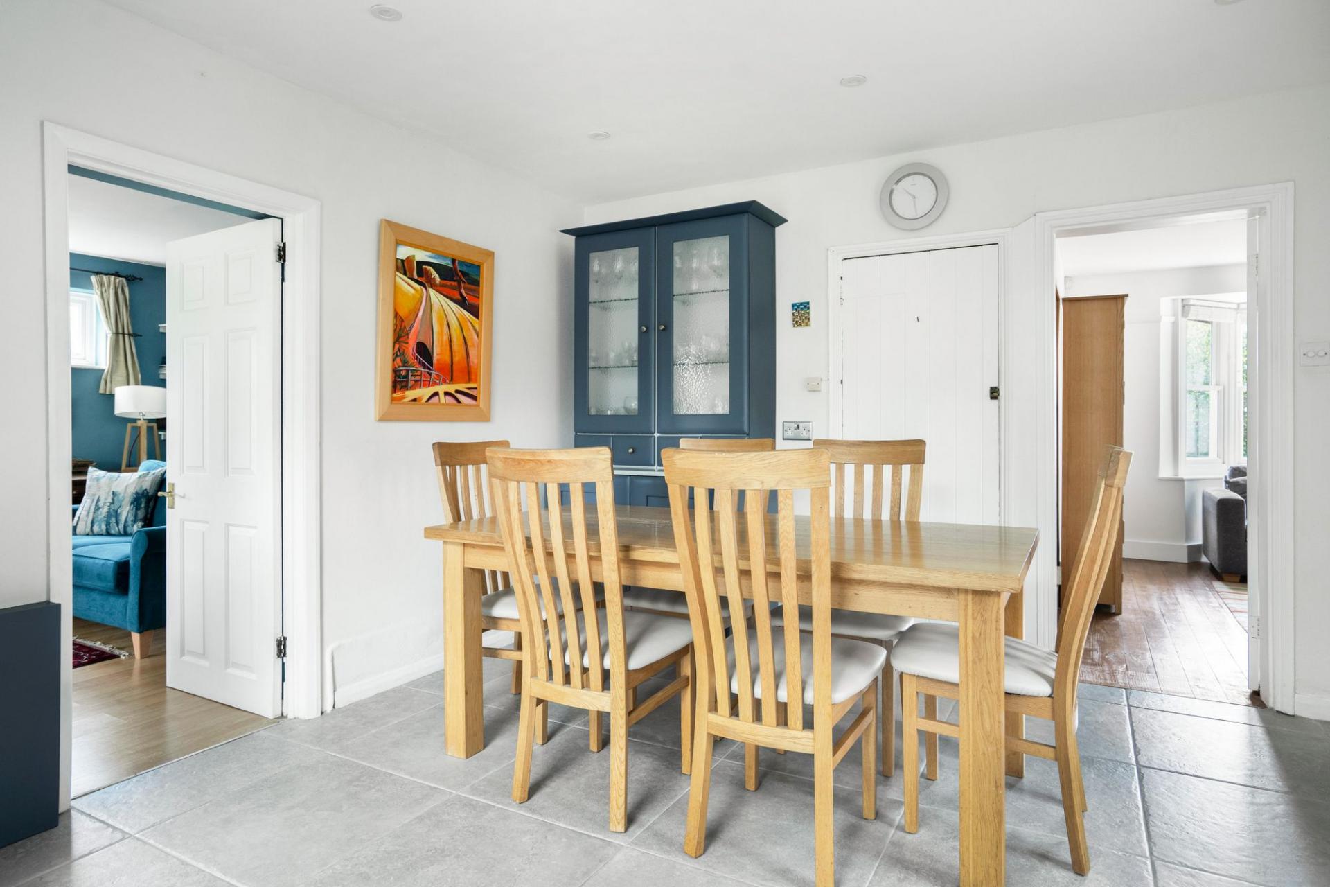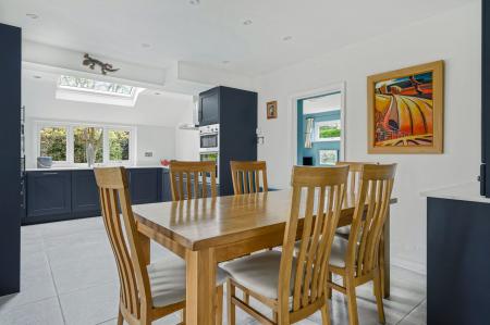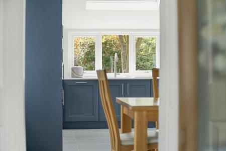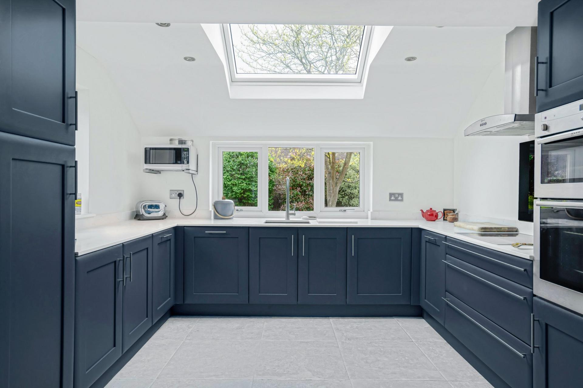 At the rear of the house is a generous, triple aspect, living room with gas-effect log burner and double patio doors to the rear garden. Adjacent to the living room is the kitchen/diner which is the heart of the home, with space for a large dining table leading to a modern, well-equipped kitchen overlooking the garden. There is a range of kitchen units with quartz worktops, inset NEFF hob, integrated dishwasher and NEFF double ovens, all set under a vaulted ceiling with large Velux window. An inner hallway leads to the cloakroom, garage and rear door to the garden.