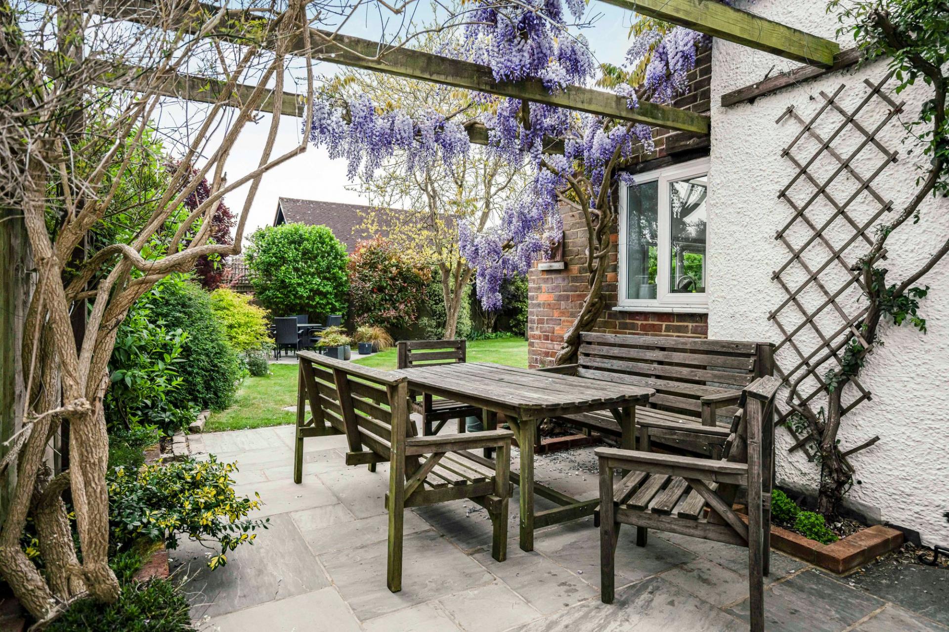 A wonderful feature of Primrose Cottage are the breathtaking wrap around gardens. Accessed via the back door is a patio with a stunning, wisteria-clad pergola, providing a tranquil entertaining space. A further corner patio seating area provides space to enjoy the late evening sunshine. The garden then flows from the rear of the house, to the side and into the large front gardens. Areas of lawn are enclosed by beautiful mature planting including a rare, Honey Locust Sunburst Tree. The gardens are quintessentially English and to the front, laurel bushes provide a high degree of privacy and screening. A gravel driveway providing parking for two cars leads to the double garage with electric up and over door.