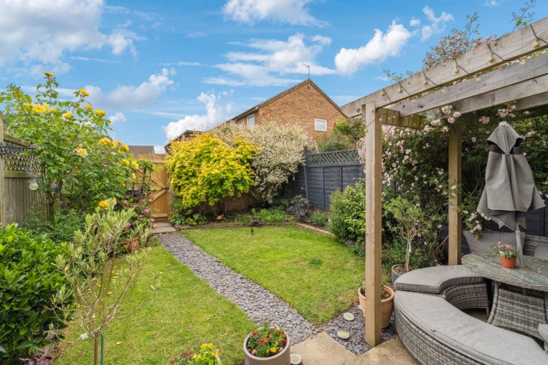 To the rear the current owners have created a gorgeous courtyard garden, perfect for enjoying family barbeques. A tranquil patio area with a pergola overlooks an area of lawn and mature shrubs with beautiful perennial planting. A rear gate provides access to garage in a nearby block.