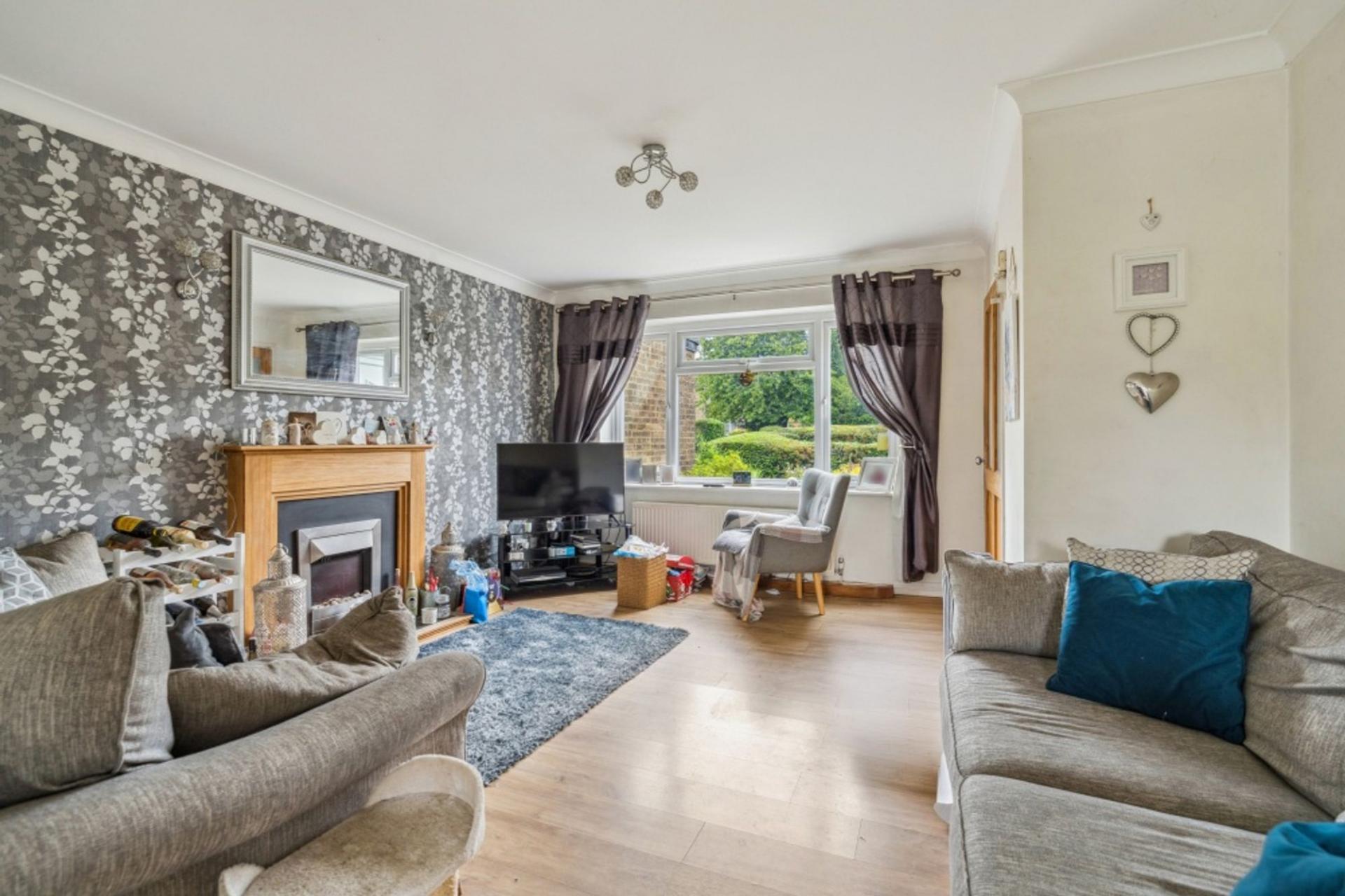 Accessed via a walk way position across the front garden, there is an initial welcoming entrance hall and handy cloakroom. The sitting room flows through to the dining room, which in turn opens up to the kitchen. Laminate wood flooring runs through this space linking the rooms. The sitting room enjoys a front aspect over the central green and has a feature electric fireplace providing a focal point.