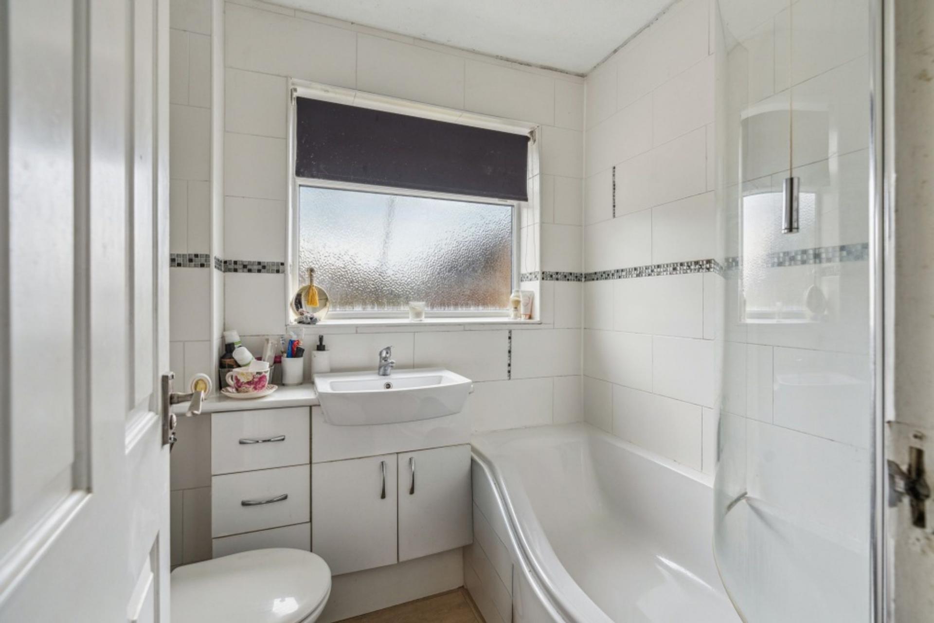 Upstairs are the three bedrooms and family bathroom, consisting of a white suite with wc, vanity hand wash basin and 'p' shaped bath with shower over. Bedroom one benefits from built-in wardrobes and enjoys a wonderful front aspect overlooking the green. Also with a front aspect is bedroom three, whilst bedroom two overlooks the rear garden and has built-in wardrobes.