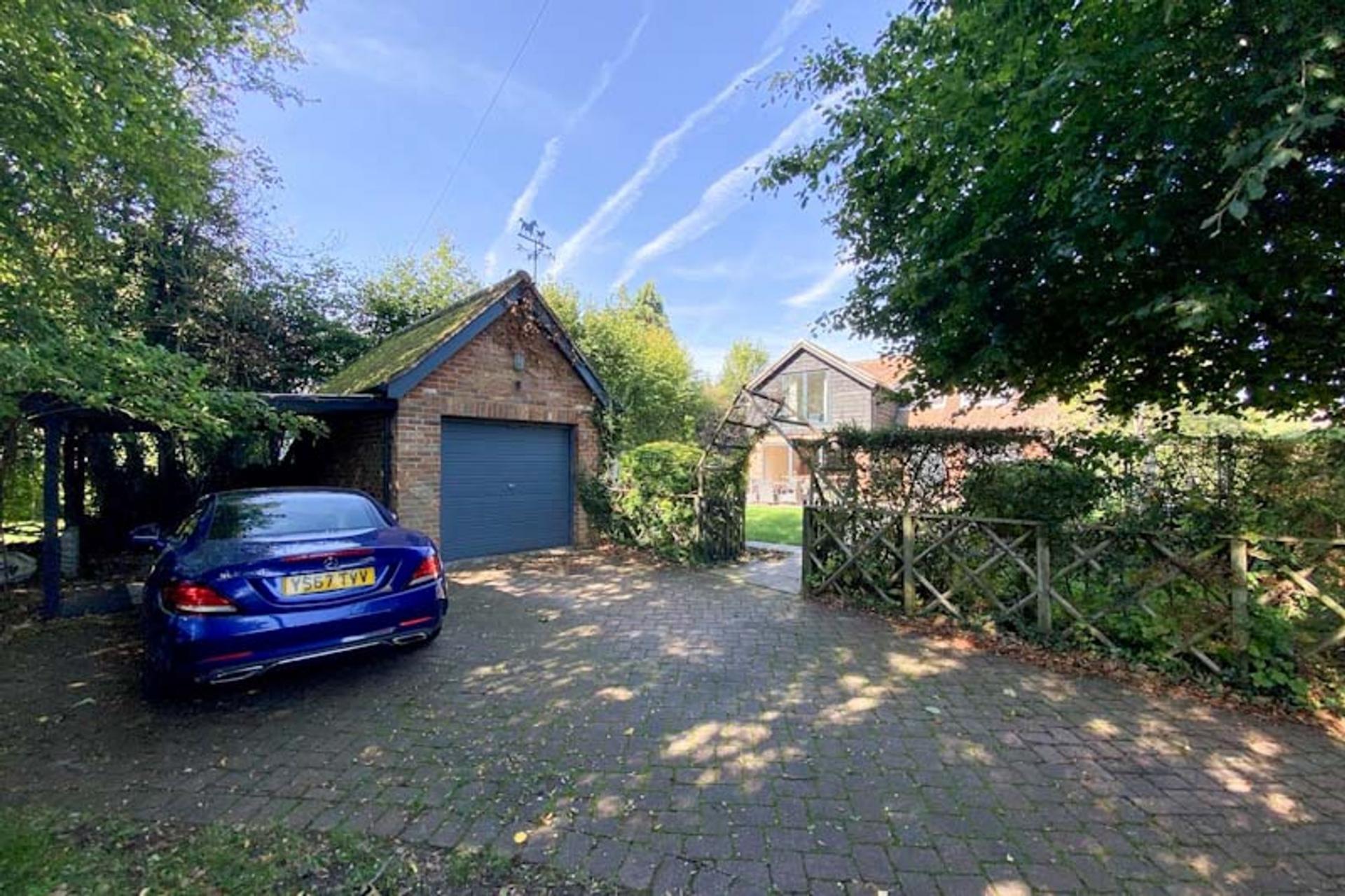 Outside, a driveway at the end of the front garden leads to a garage with storage shed behind and a car port in front of which is parking for several vehicles. A gate leads into the garden which is bisected with a path leading to the back door. The patio is outside the bifold doors with the path continuing round the side to the front door and then to the back garden. Pedestrian access to the house is via a gate in the hedge and short path to the front door.
