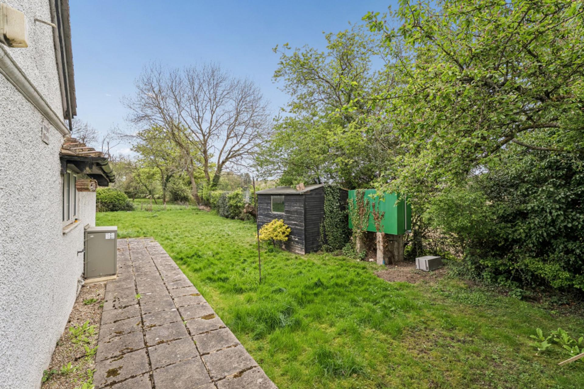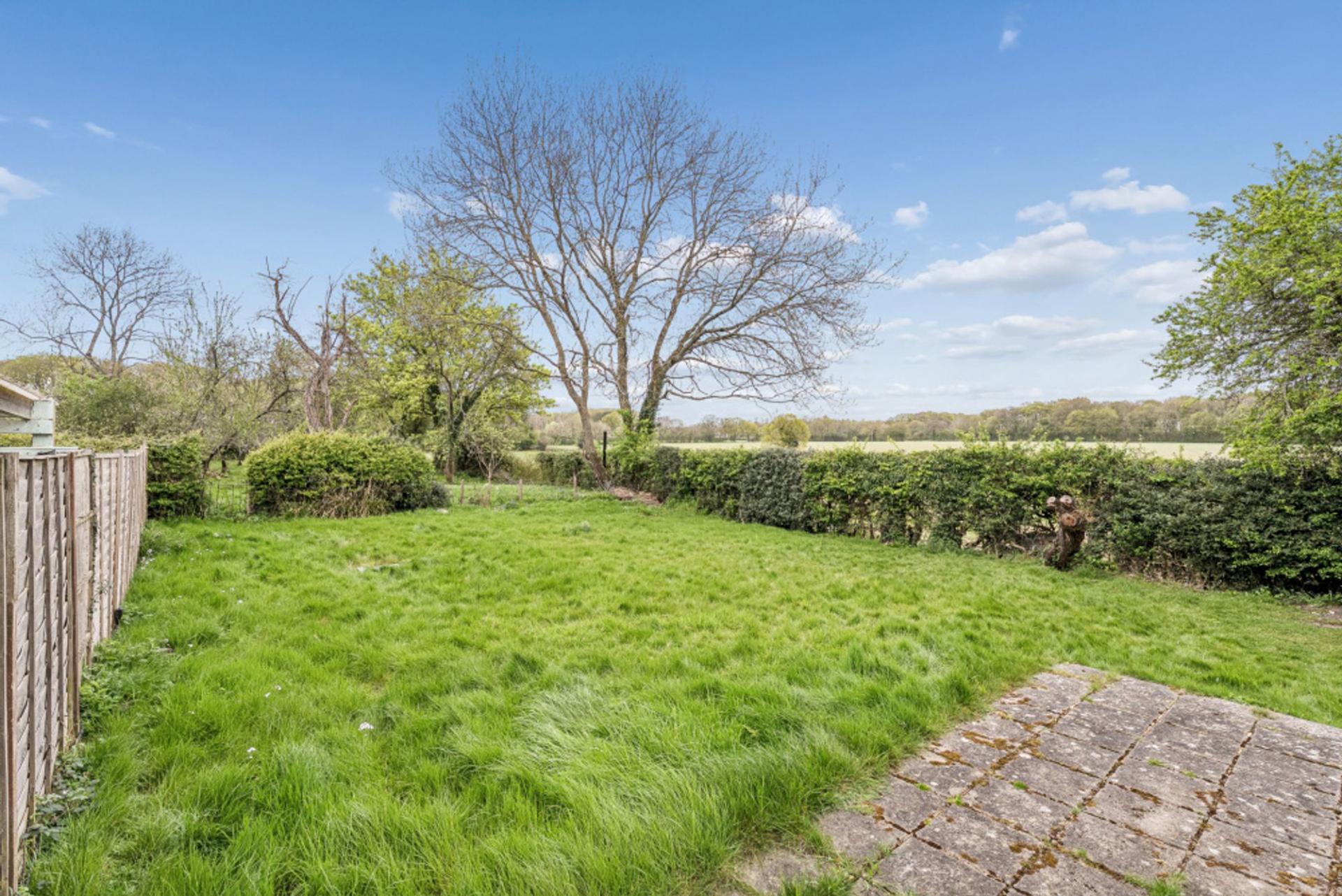 - Large side and rear garden with fields to the side