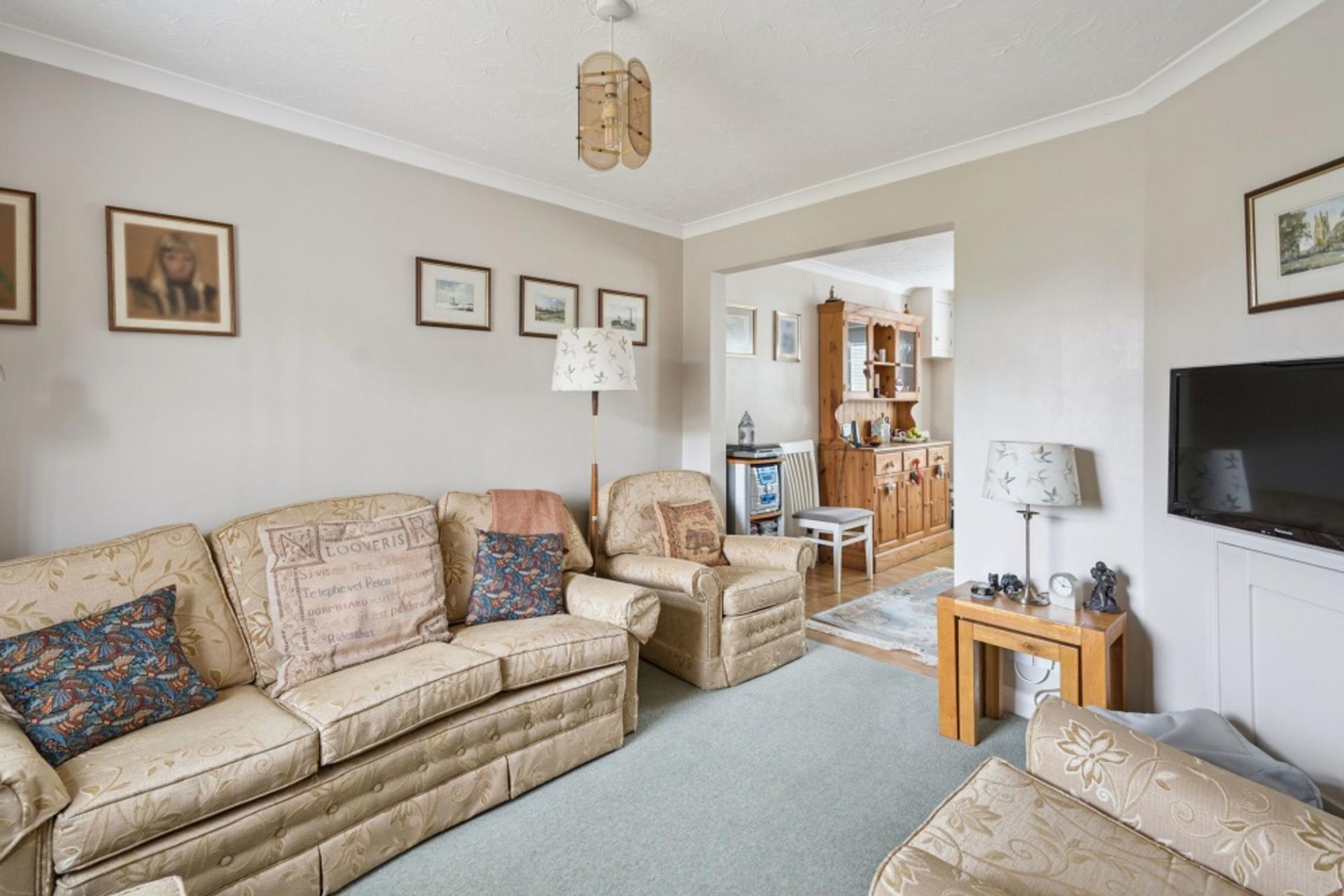 The lounge enjoys a front aspect via a bay window and leads seamlessly through to the kitchen/dining room. The kitchen comprises a range of floor and wall mounted units, space for the usual appliances and a return breakfast bar linking the two spaces. There is a double aspect over the pretty rear garden and a door leading to an initial South facing patio.