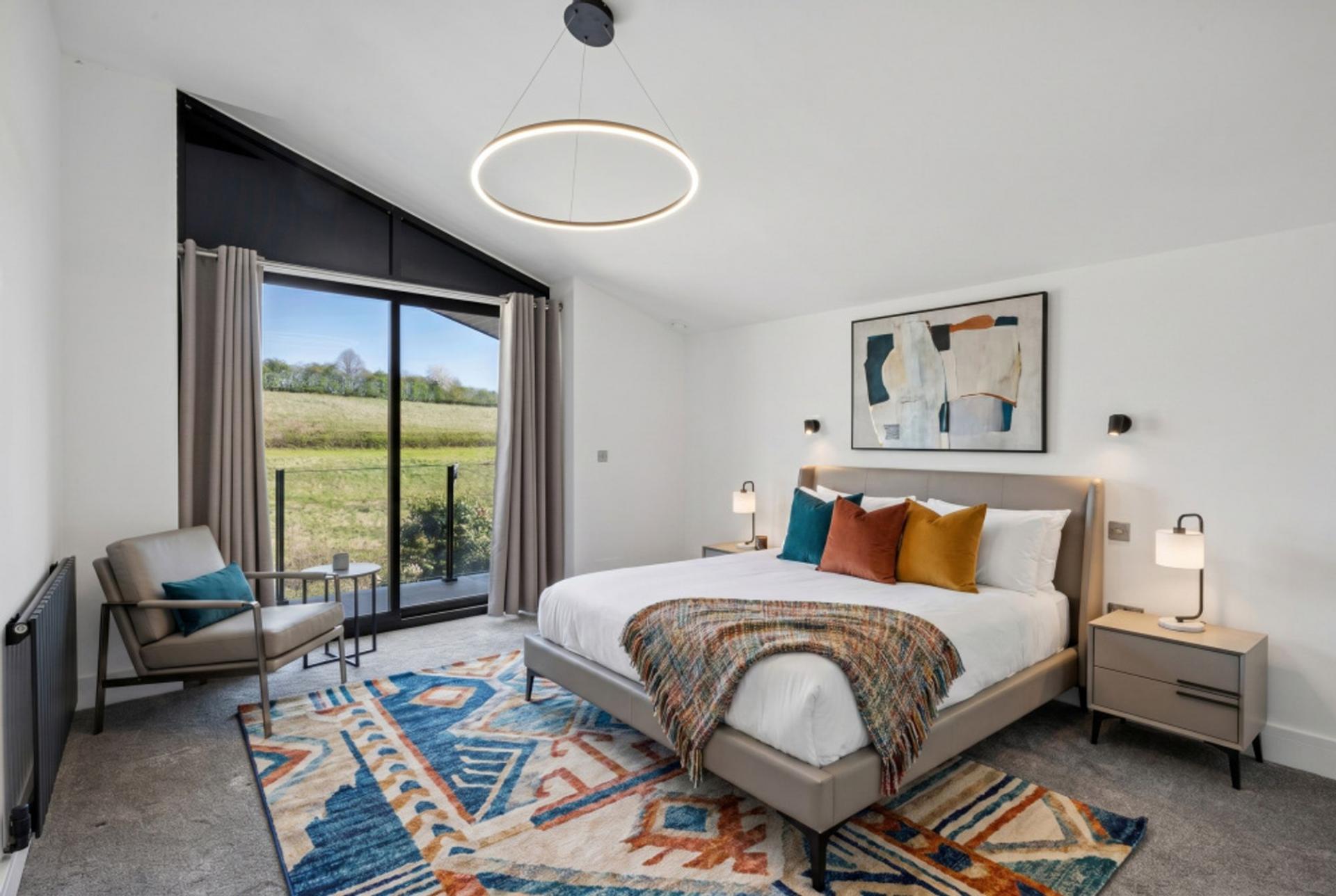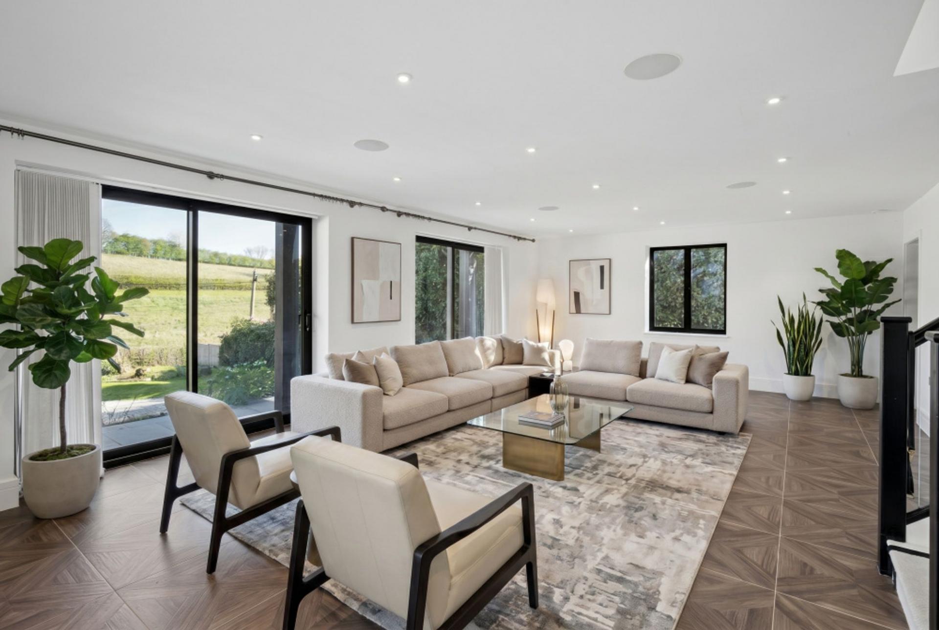 - Large sitting room with access to terrace and with views across open farmland.