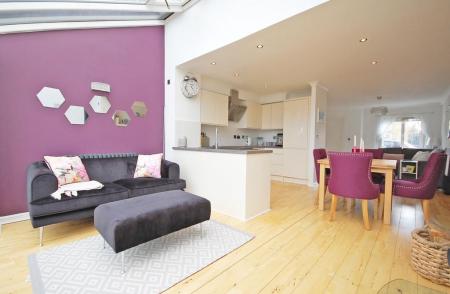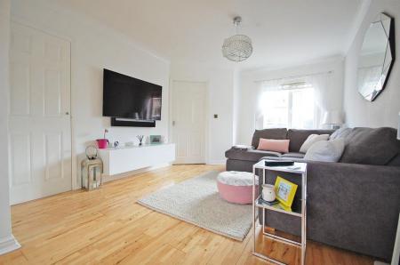 Double glazed window to front aspect, radiator, storage cupboard, solid wood flooring, smooth ceiling, open plan to kitchen/dining room.