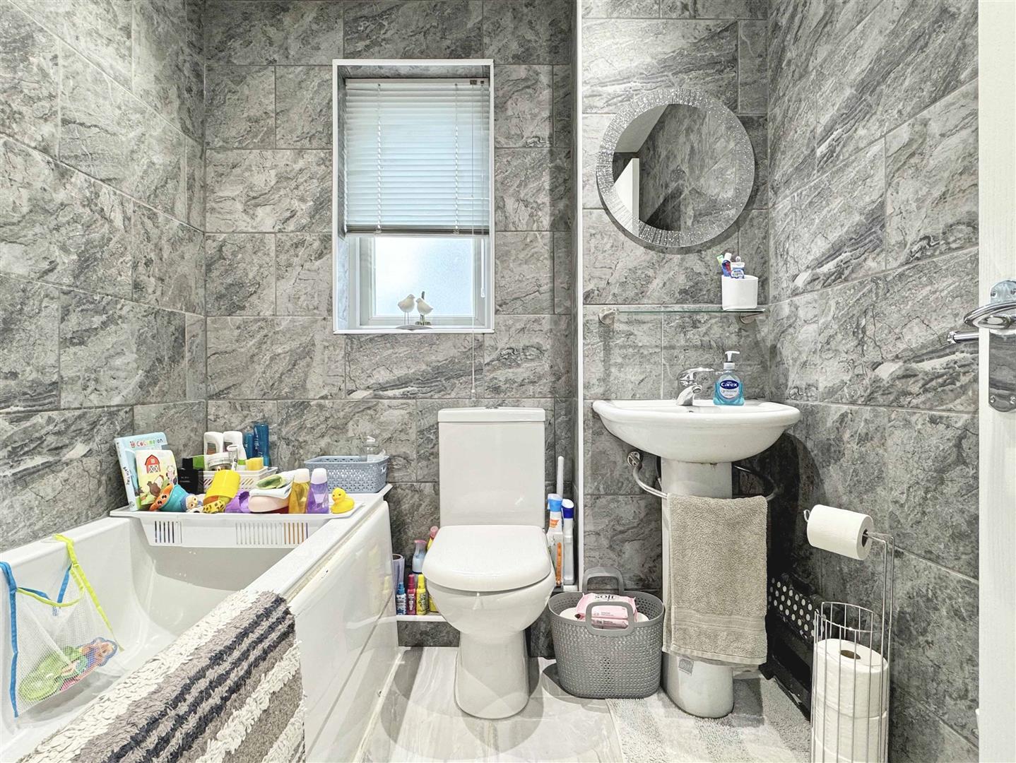 Bathroom: - Opaque double glazed window to front aspect, panelled bath with central mixer tap and shower over, low level WC, pedestal wash hand basin, fully tiled, radiator, wooden flooring.