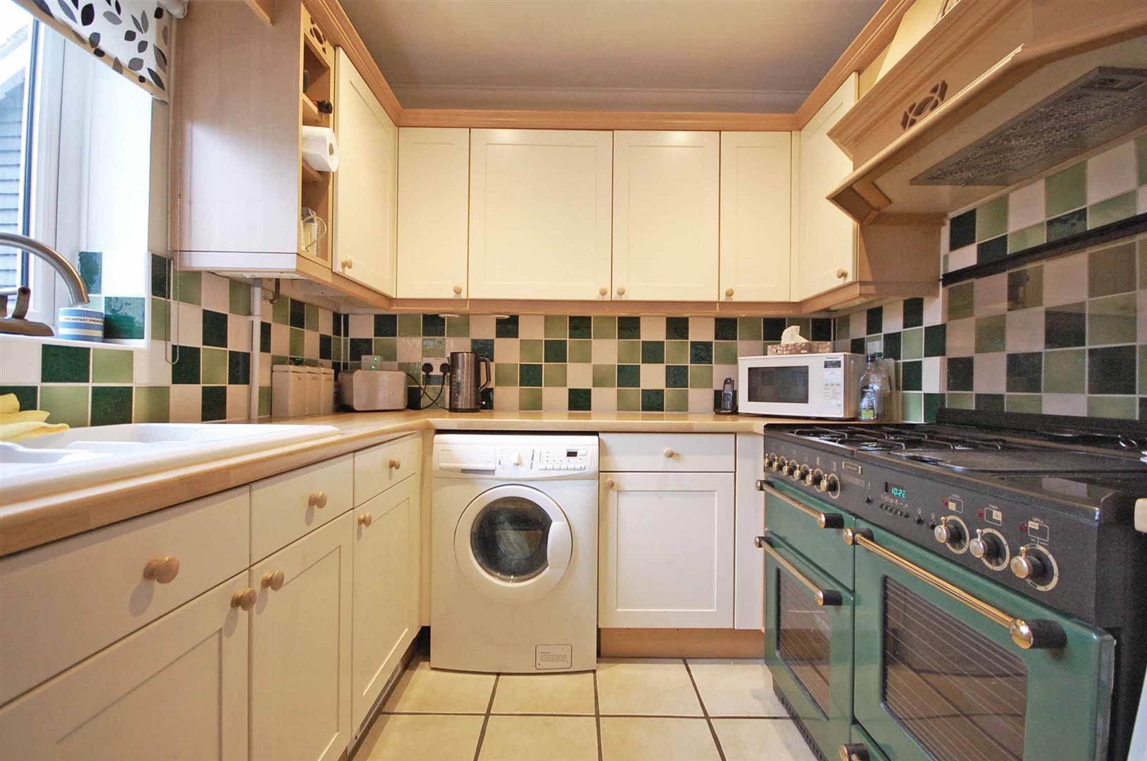 Double glazed window to rear aspect, matching wall and base units with edged work surfaces, one and a half bowl sink and drainer with central mixer taps, Range cooker with extractor hood, integrated fridge/freezer and dishwasher, space for washing machine, wall-mounted boiler, tiled flooring, smooth ceiling.