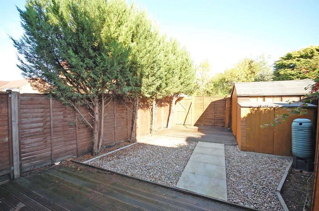 Enclosed rear garden commencing with raised decking to immediate rear, followed by shingle area to rear with pathway leading to shed and gated rear access.