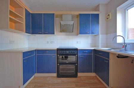 Double glazed window to rear aspect, matching wall and base units with roll top work surfaces, one and a half bowl sink and drainer with central mixer taps, space for fridge/freezer, washing machine and cooker, extractor hood, wall-mounted boiler, vinyl flooring, textured ceiling.