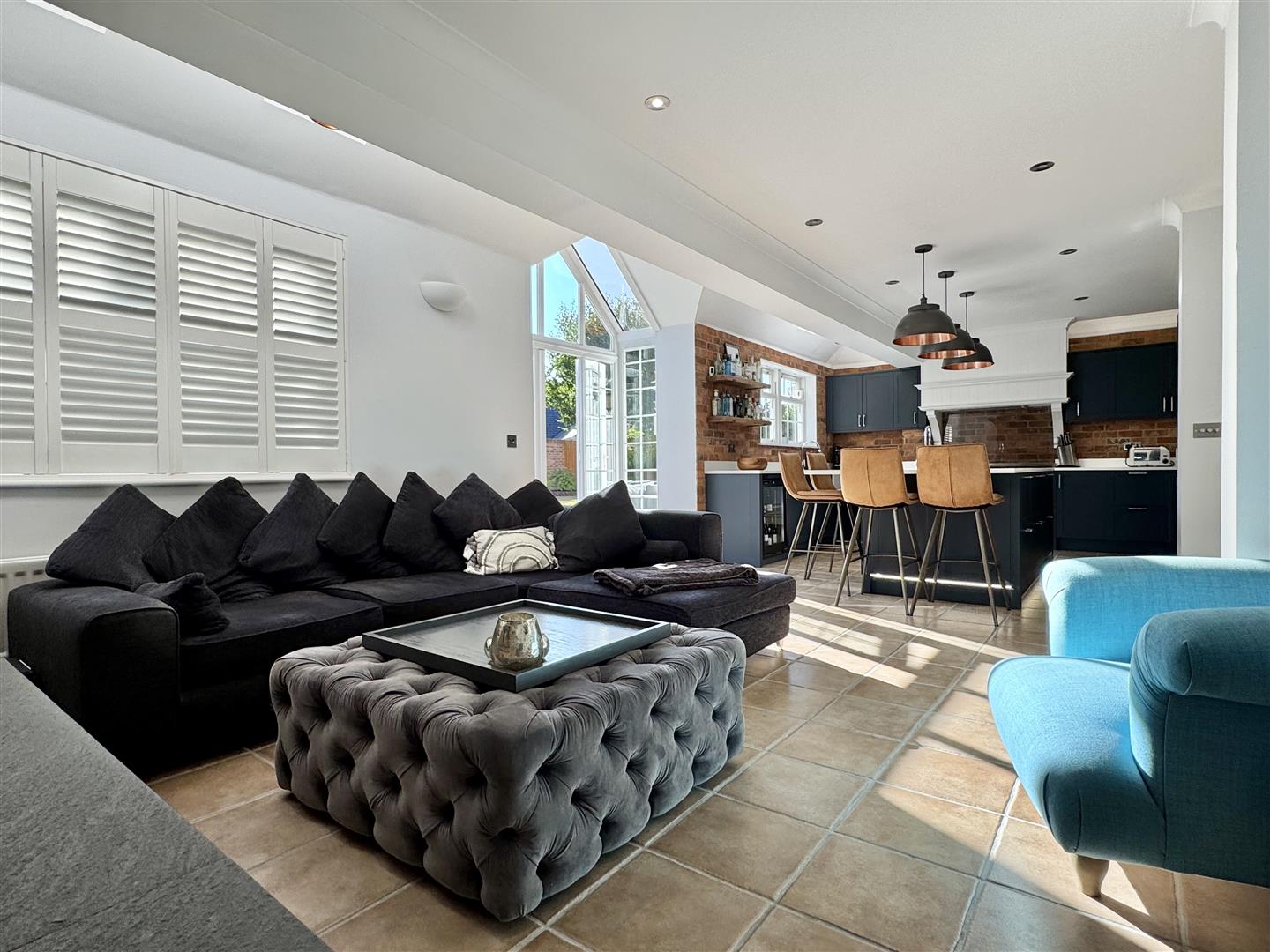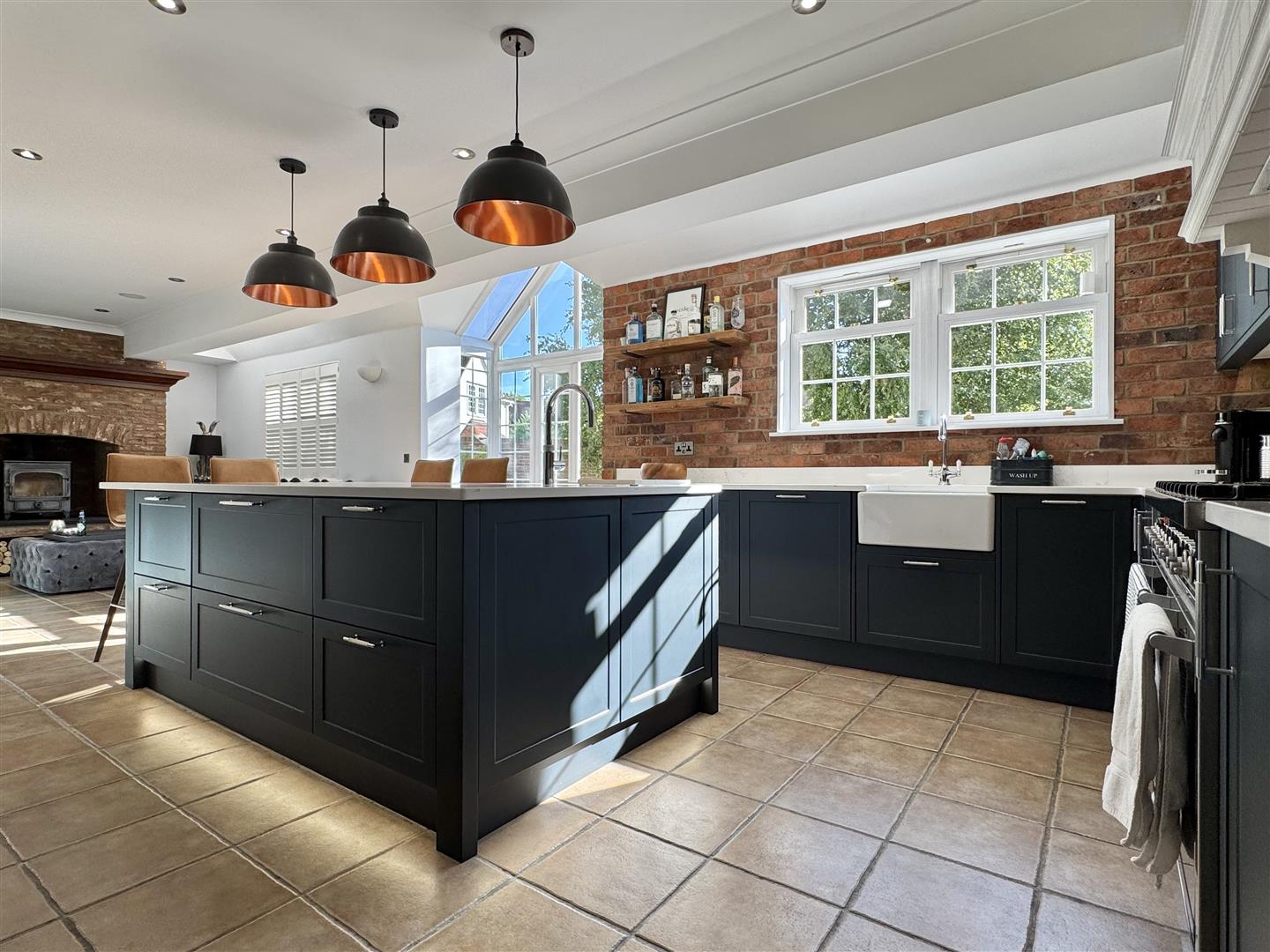 - Substantial 25' TRIPLE ASPECT Lounge With 18ft Vaulted Ceiling & Log Burner