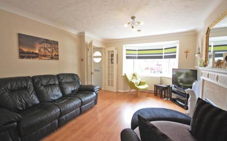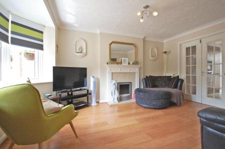 Double glazed bay window to front aspect, fireplace surround with electric fire, radiator, textured ceiling, french doors to kitchen breakfast room.