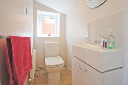 Double glazed window to side aspect, low level WC, pedestal wash hand basin, radiator, tiled flooring, smooth ceiling,