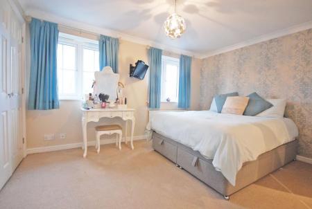Two sets of double glazed windows to rear aspect, two sets of built-in wardrobes, radiator, carpet to floor and smooth coved ceiling.