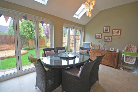 Two Velux windows to rear aspect, radiator, Karndean tiled flooring and smooth part-vaulted ceiling. Two sets of bi-folding doors onto rear garden.