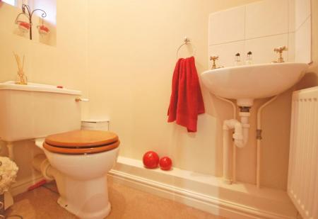 Opaque double glazed window to front aspect, low level WC, inset wash hand basin, radiator, carpet to floor and smooth coved ceiling.