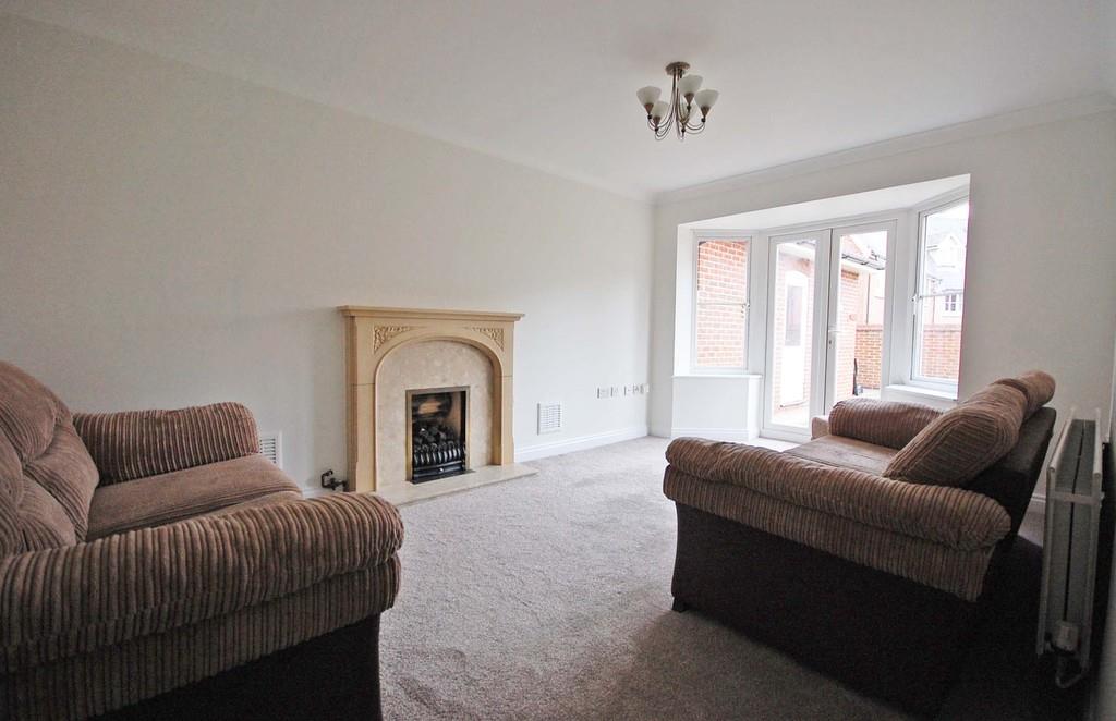 Double glazed window to rear aspect, fireplace surround, radiator, carpeted flooring, smooth ceiling, double glazed french doors to rear garden.