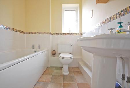 Double glazed window to rear aspect, panelled bath, low level WC, pedestal wash hand basin, radiator, vinyl flooring, smooth ceiling.