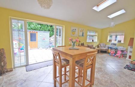 Double glazed windows to rear, side and Velux windows to rear aspect, radiator, tiled flooring, vaulted ceiling. Double glazed french doors to rear garden.